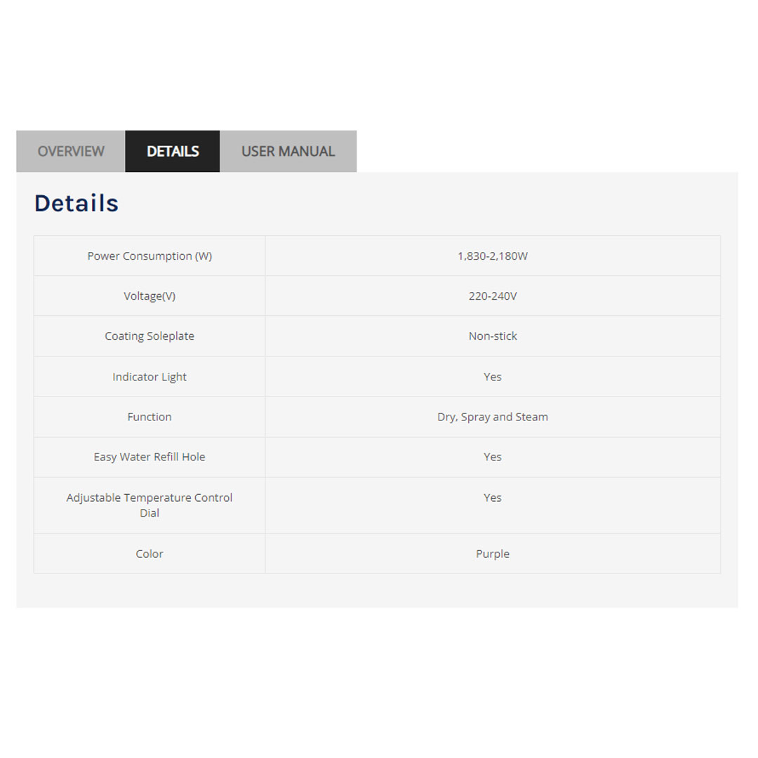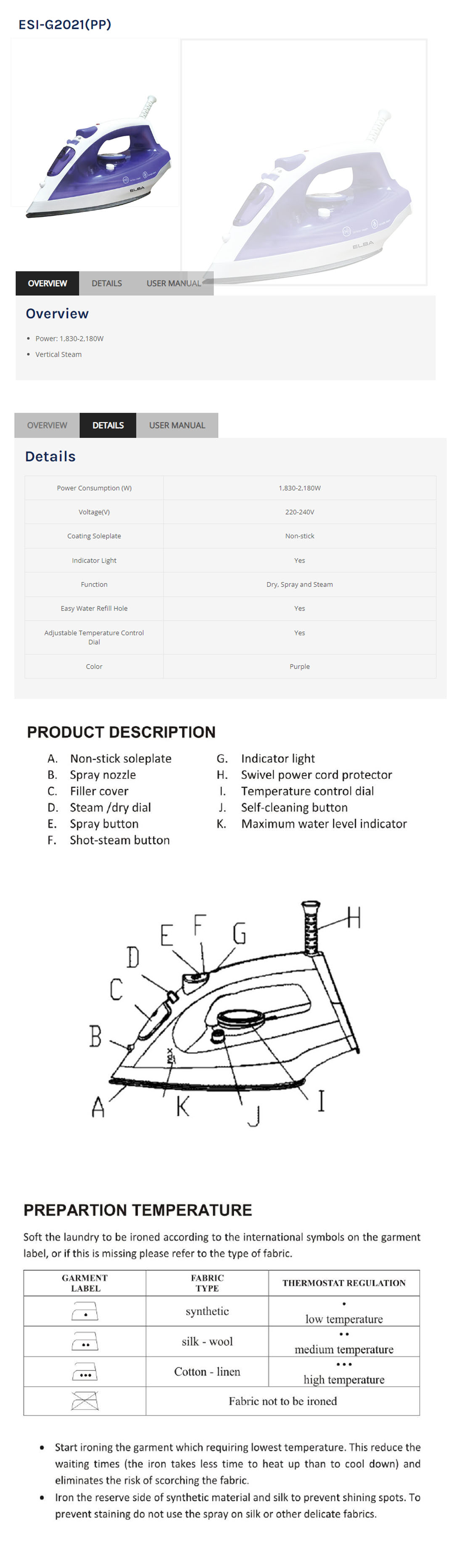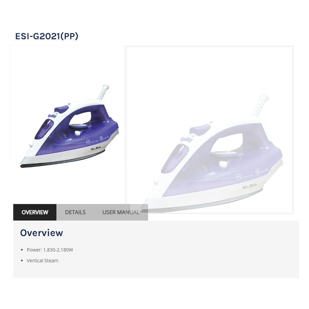 ELBA 2180W Steam Iron ESI-G2021(PP) | Vertical Steam | Non Stick Coating Soleplate | Dry, Spray and Steam Function | Iron with 1 Year Warranty