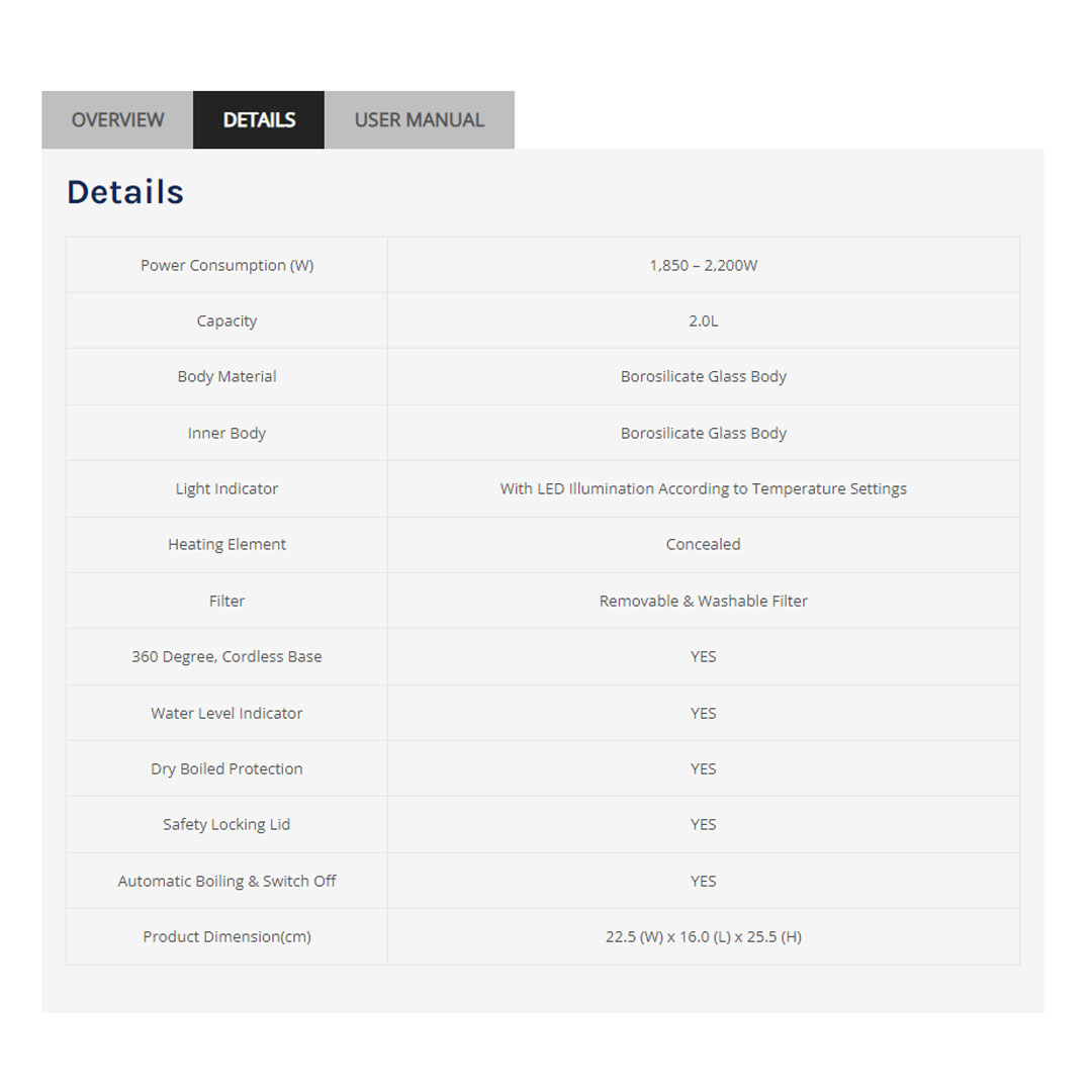 ● Heating Element: Concealed
