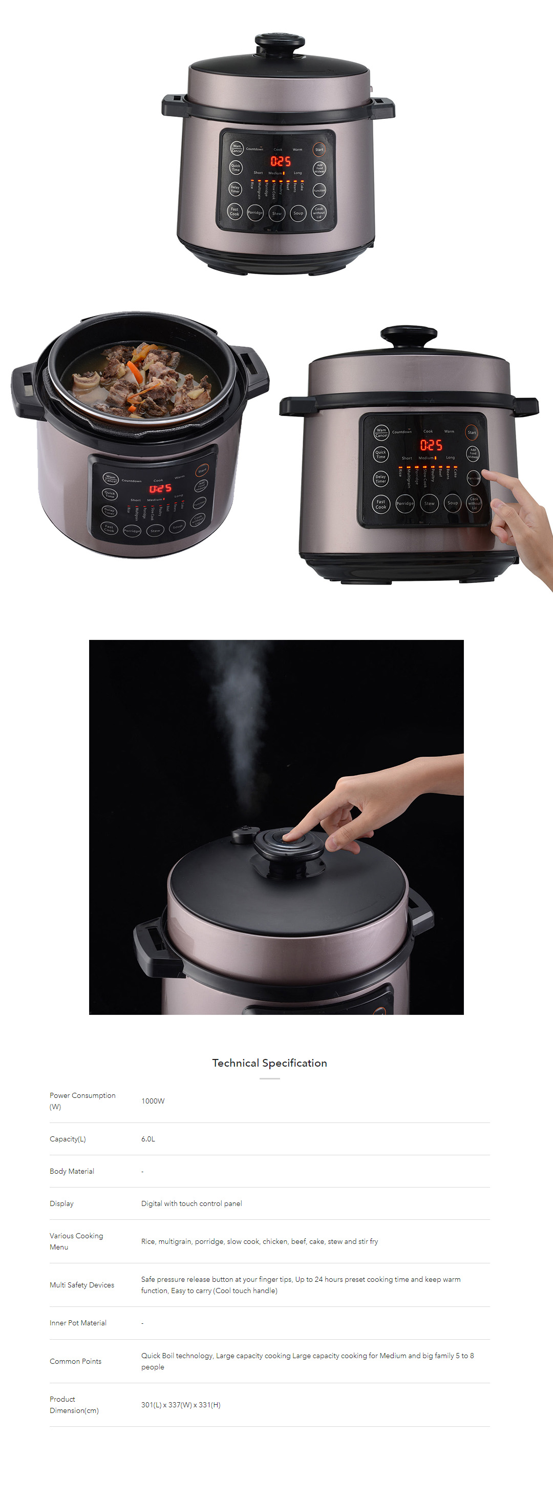 ELBA 6L Electric Pressure Cooker EPC-N6082(BR) | 1000W | Variety Cooking Programs | Quick Boil Technology | Multi Safety Device | Pressure Cooker with 1 Year Warranty
