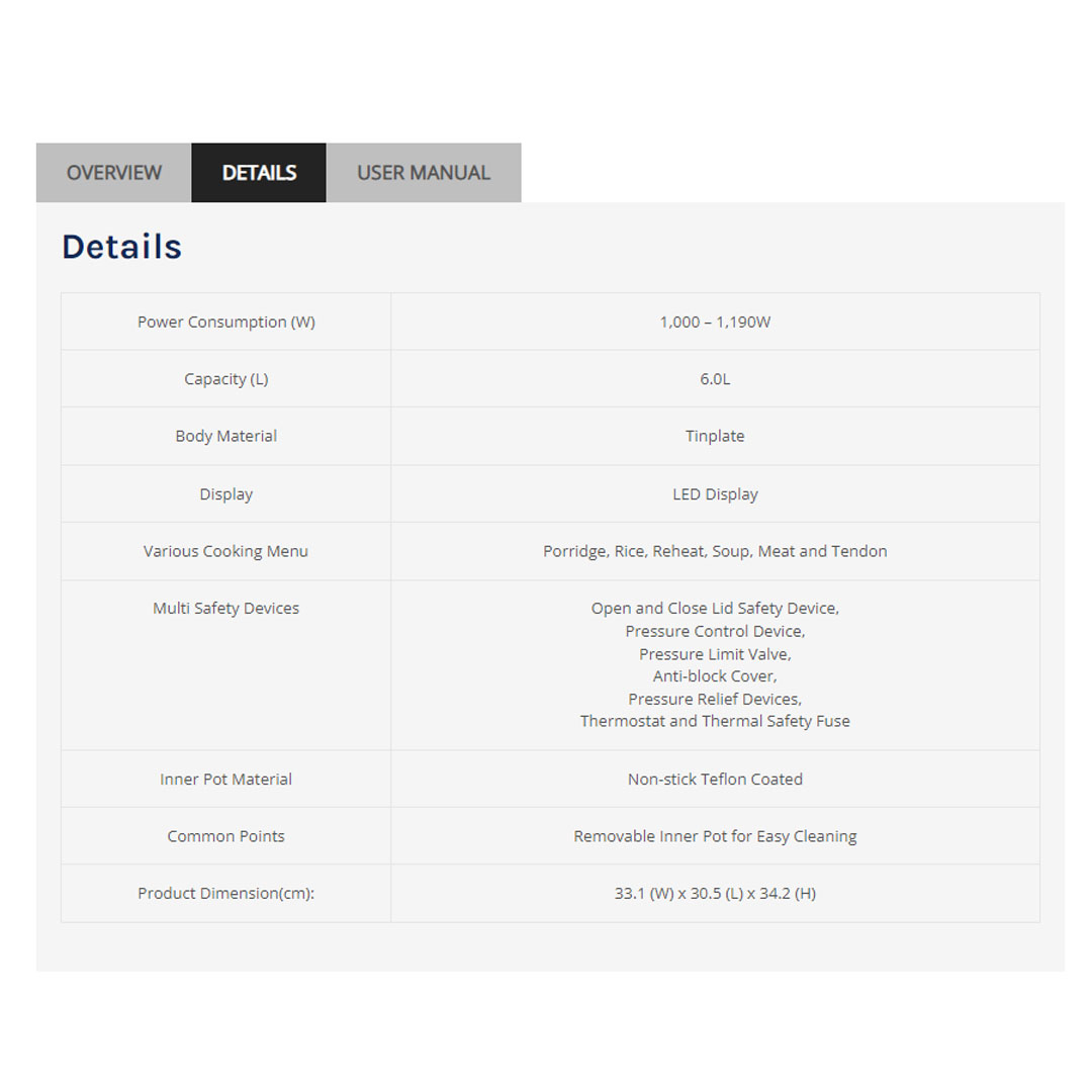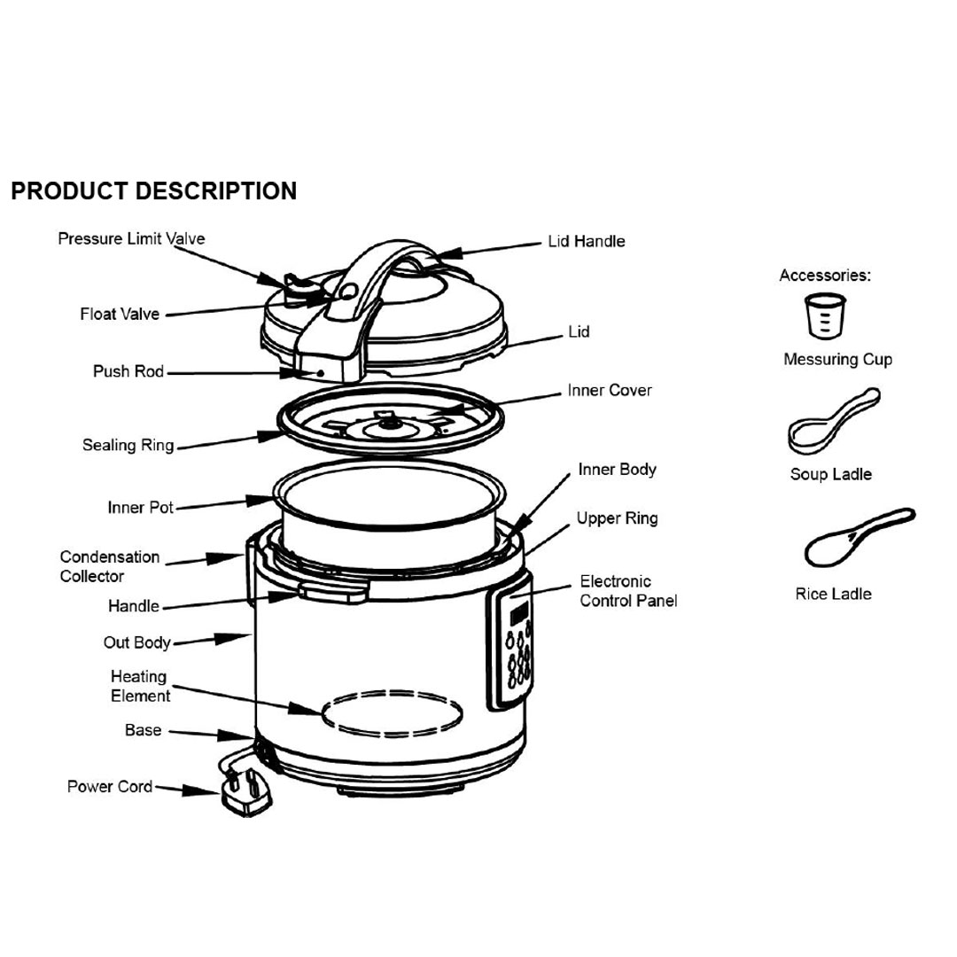 ELBA 6L Pressure Cooker EPC-J6010(CG) | Auto Control Technology with Computerized Cooking Programs | Variety of Cooking Functions | Pressure Cooker with 1 Year Warranty