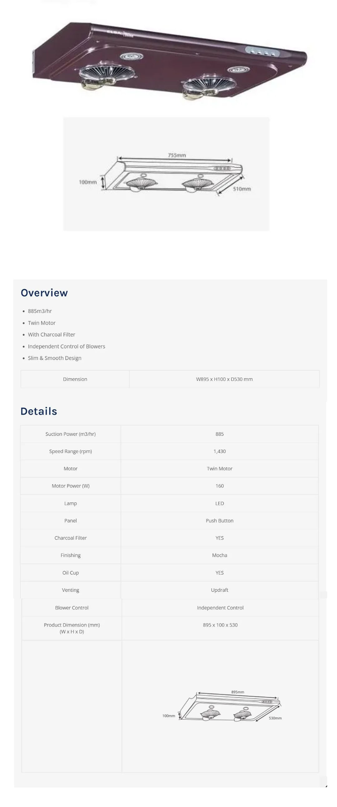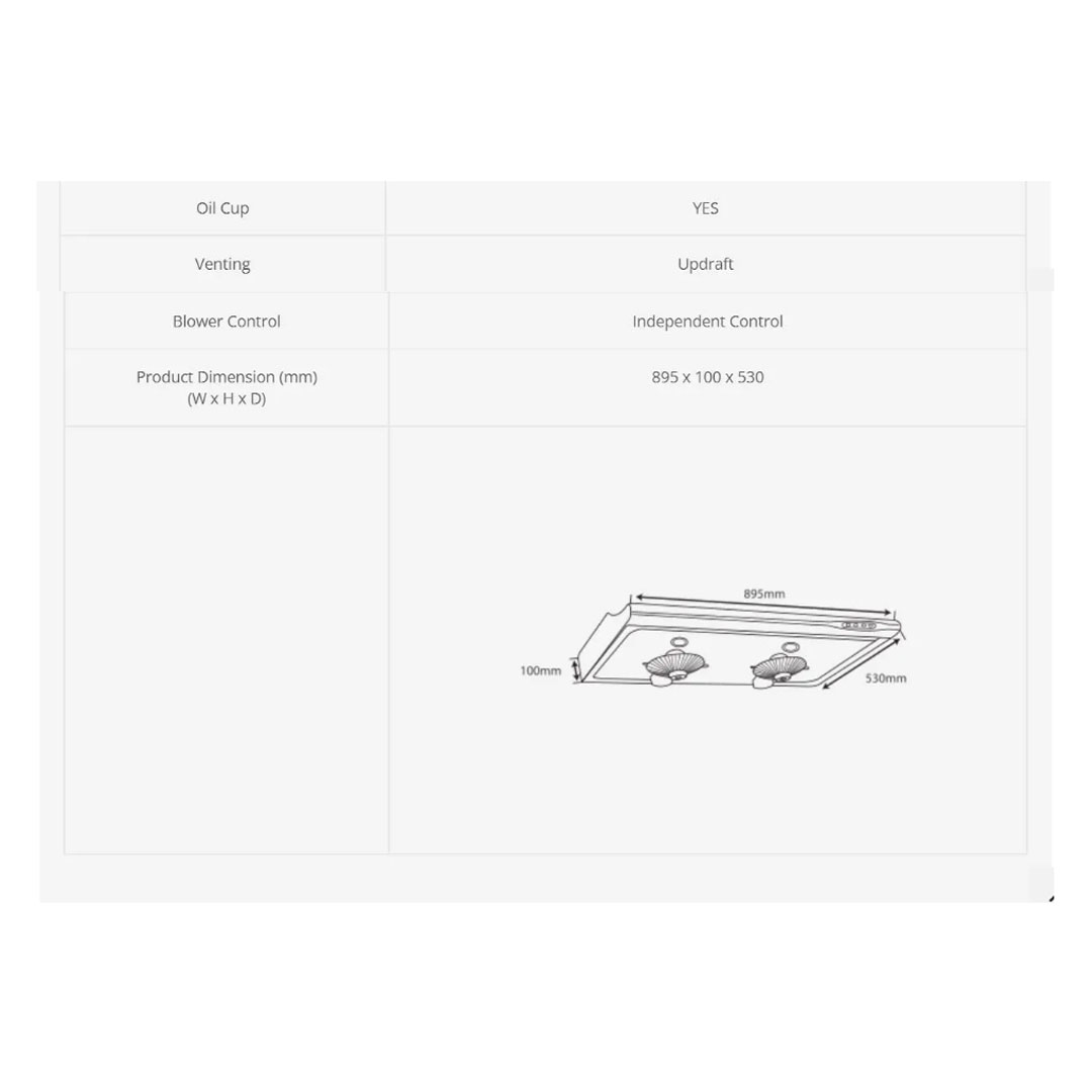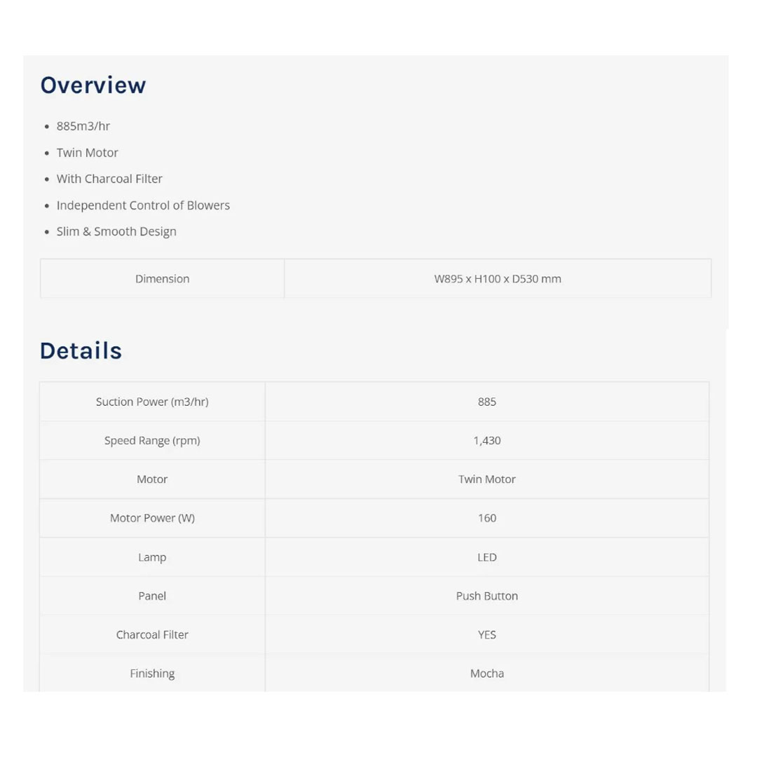 ELBA 885m3/hr Slim Cooker Hood 2918/90MC | Twin Motor | Independent Control of Blowers | With Charcoal Filter | Hood with 1 Year Warranty