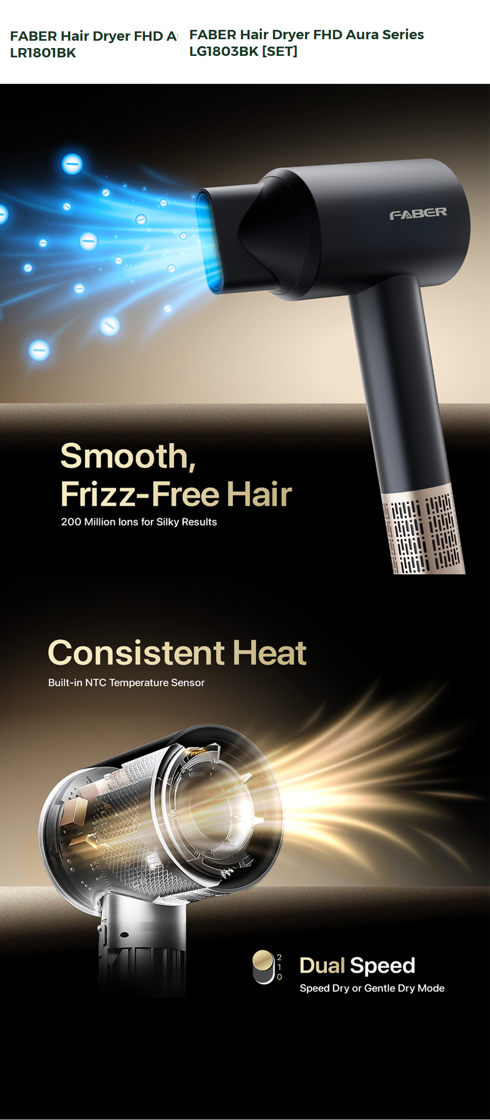 Faber 1800W FHD Aura 18 LED Display Hair Dryer Set | LG1803BK/LR1801BK | Multiple Heat Settings | Cool Shot Button | Powerful Motor