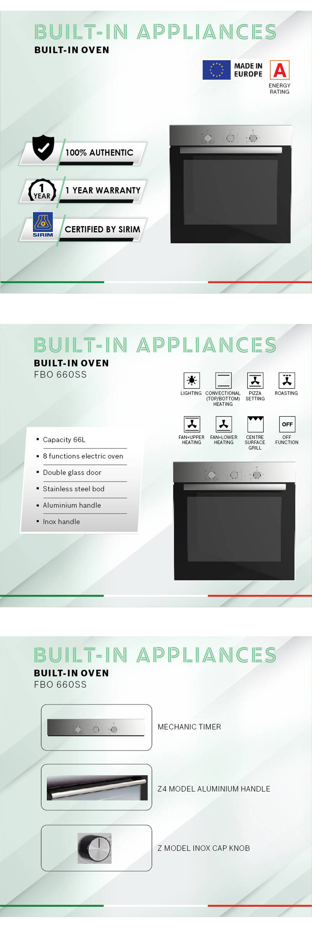 ● 8 Functions Electric Oven ● Double Glass Door ● Stainless Steel Body