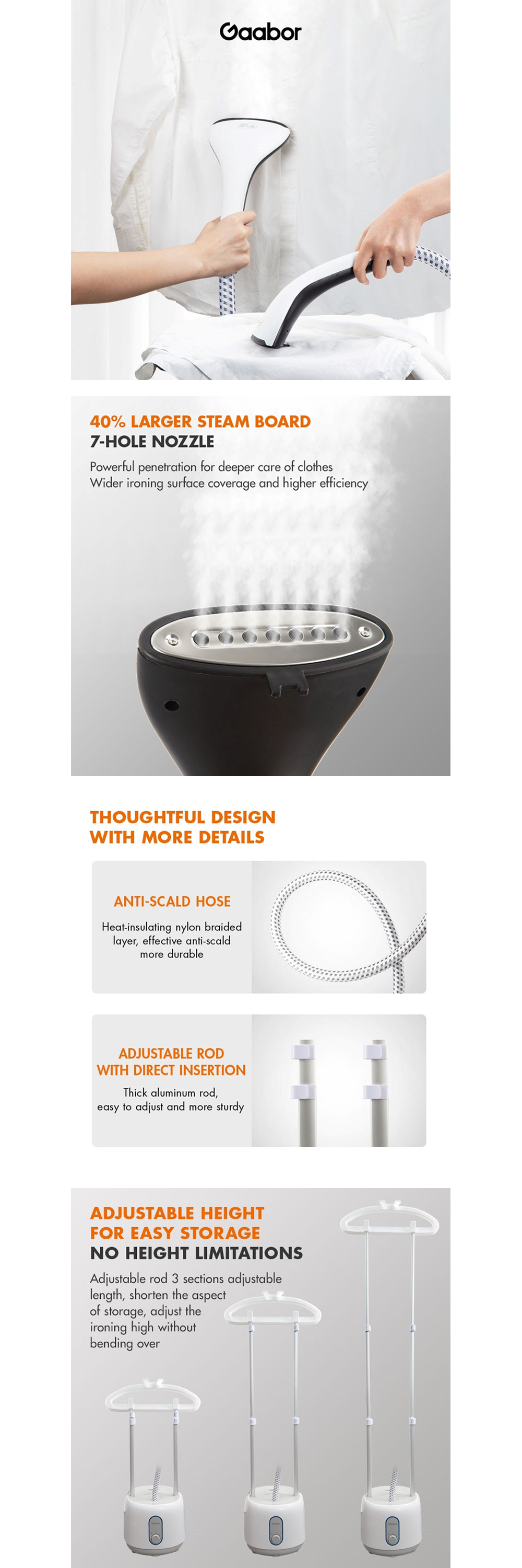 Gaabor 2000W Garment Steamer GS2000M-WH04A | Multi-Speed Steam Adjustment | Easy switching | Oversized water tank | 1 Year General Warranty