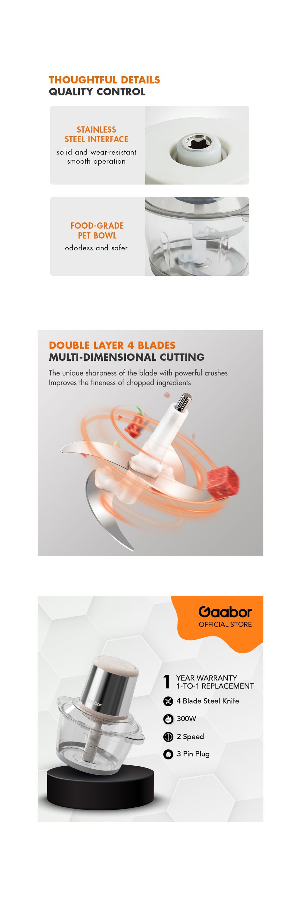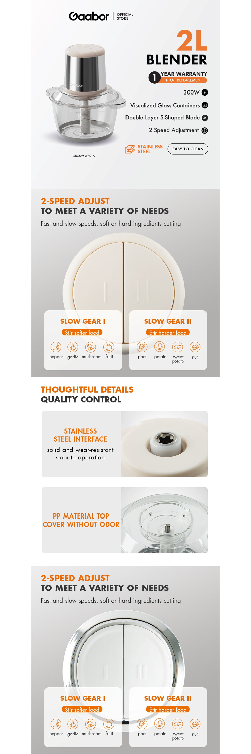 Gaabor 2L Food Processor Blender MG20M-WH01A | 300W High Power | 2L Large Capacity | Easy To Clean | 1 Year General Warranty