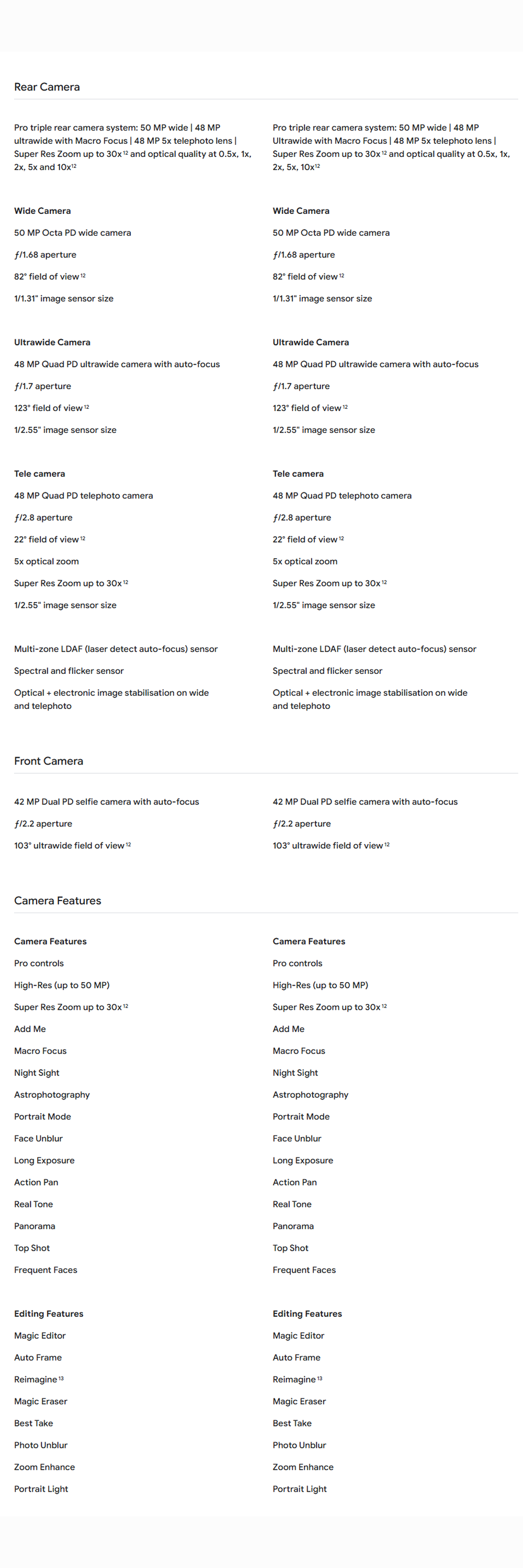 • Camera Front(MP): 42MP, 103° ultrawide field of view, panorama