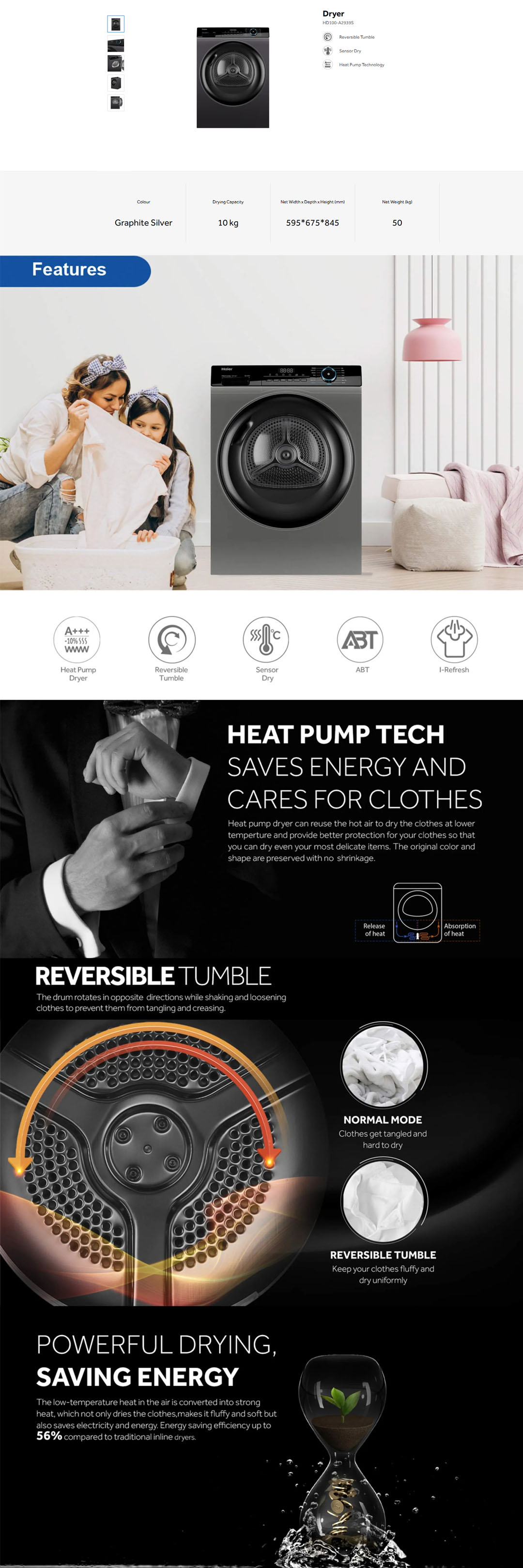 HAIER 10KG Heat Pump Dryer HD100-A2939S | Reversible Tumble | Sensor Dry | I-Fresh | Dryer with 2 Year Warranty