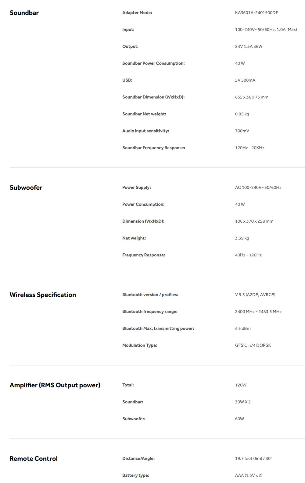 ▪ 2.1 Dolby Atmos Sound Bar With wireless subwoofer