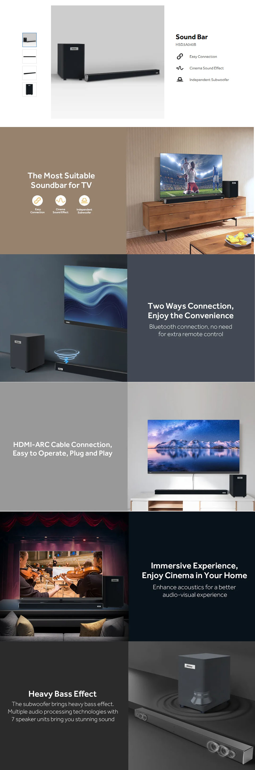 HAIER 120W Sound Bar HSD3A040B | Cinema Sound Effect | Independent Subwoofer | Easy Connection | HDMI ARC | Bluetooth | Sound Bar with 1 Year Warranty