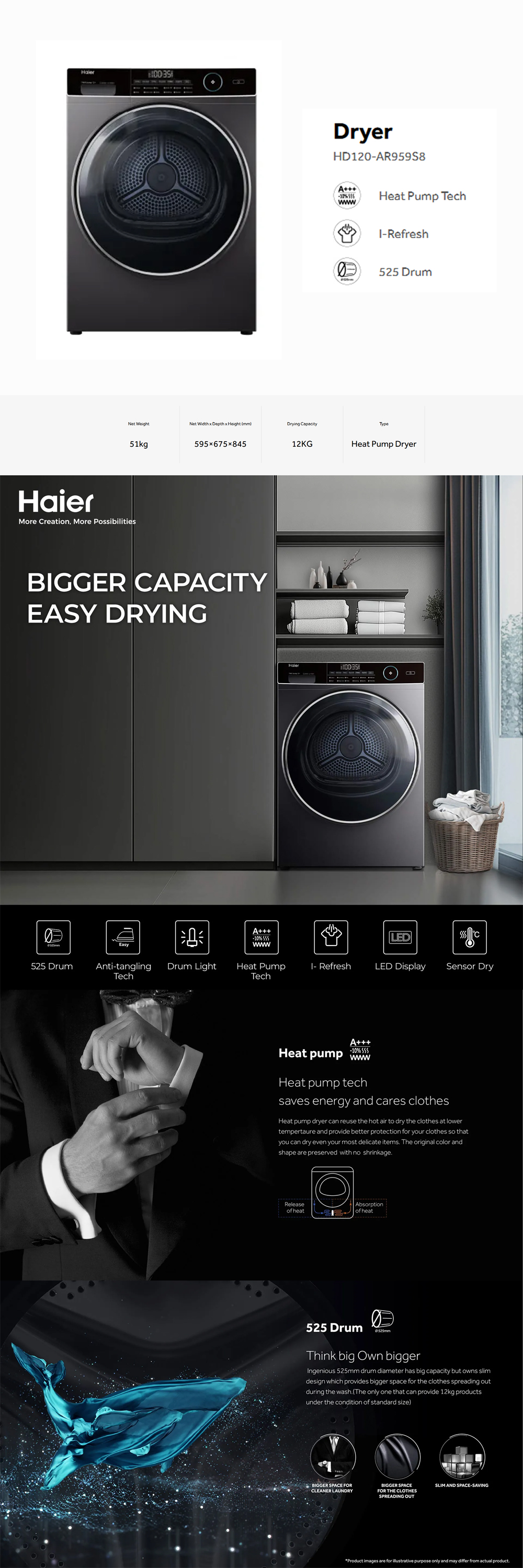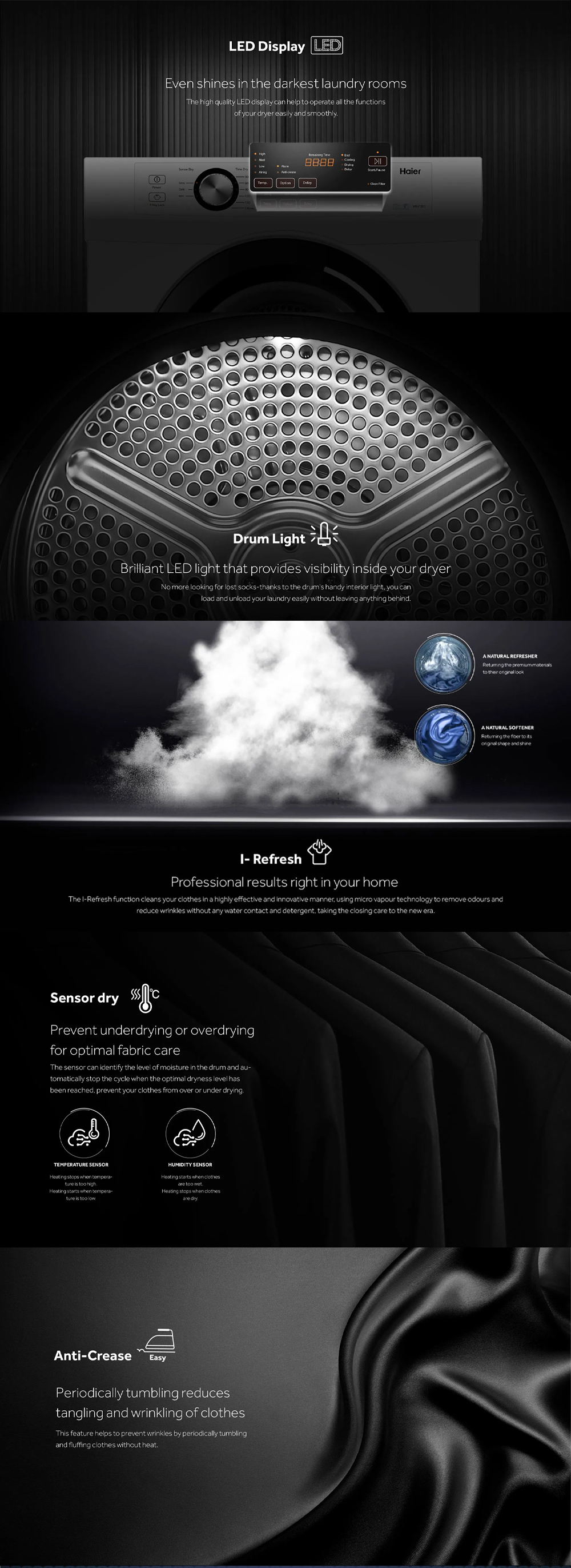 ▪ Reversible Tumble ▪ Sensor Dry ▪ Heat Pump Technology ▪ I-Refresh ▪ Anti-crease Technology