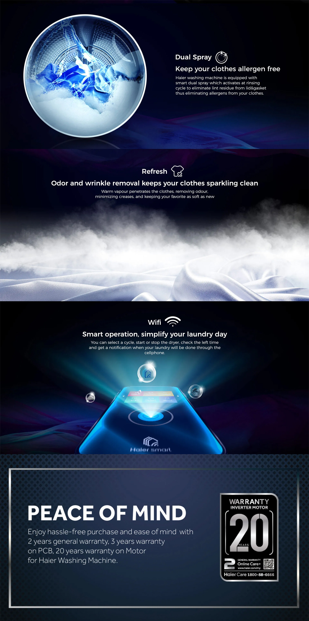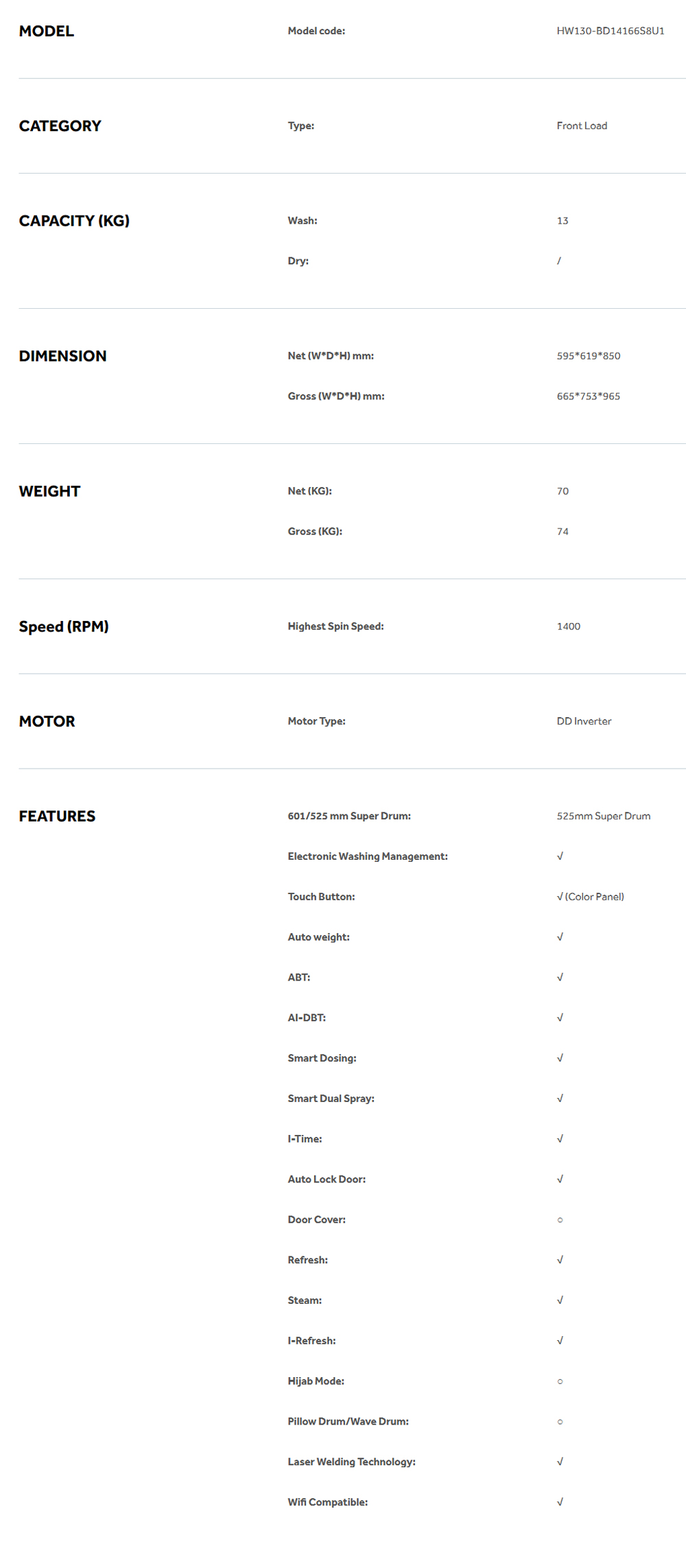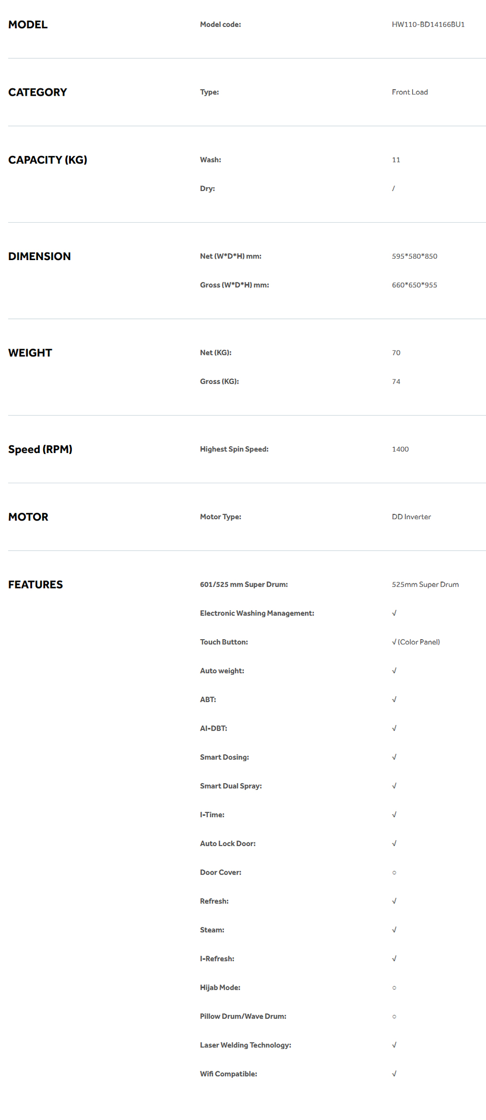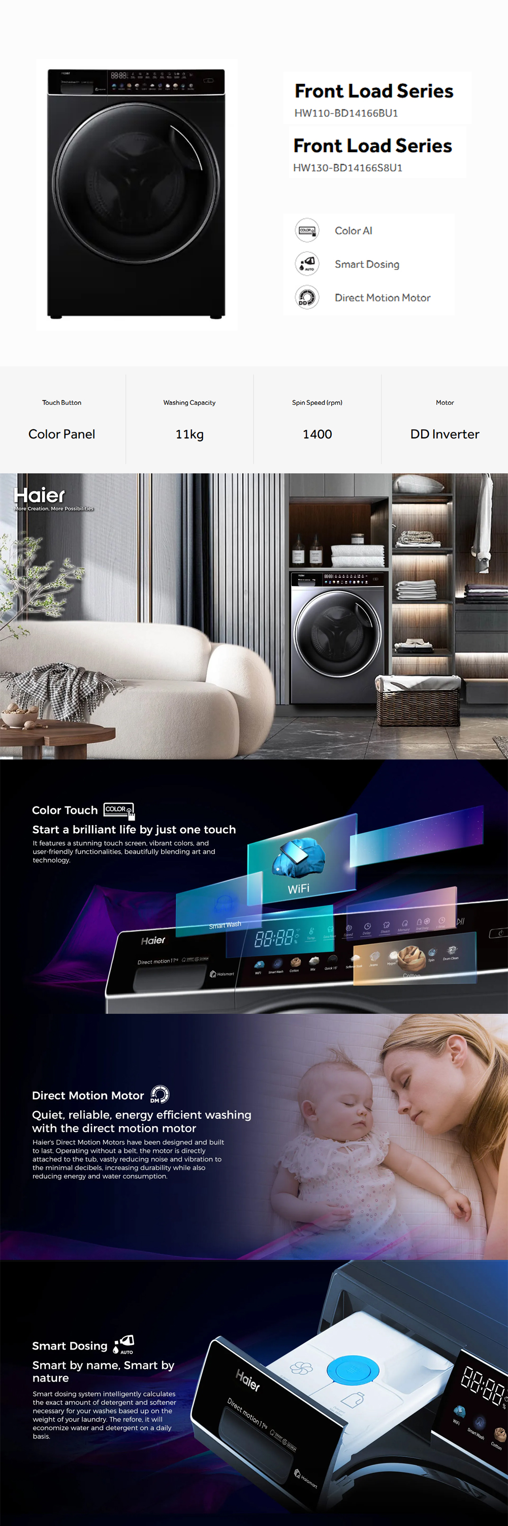 HAIER 11KG / 13KG DD Inverter Front Load Washing Machine HW110-BD14166BU1/ HW130-BD14166S8U1 | 525mm Super XL Drum | Color AI Touch Panel