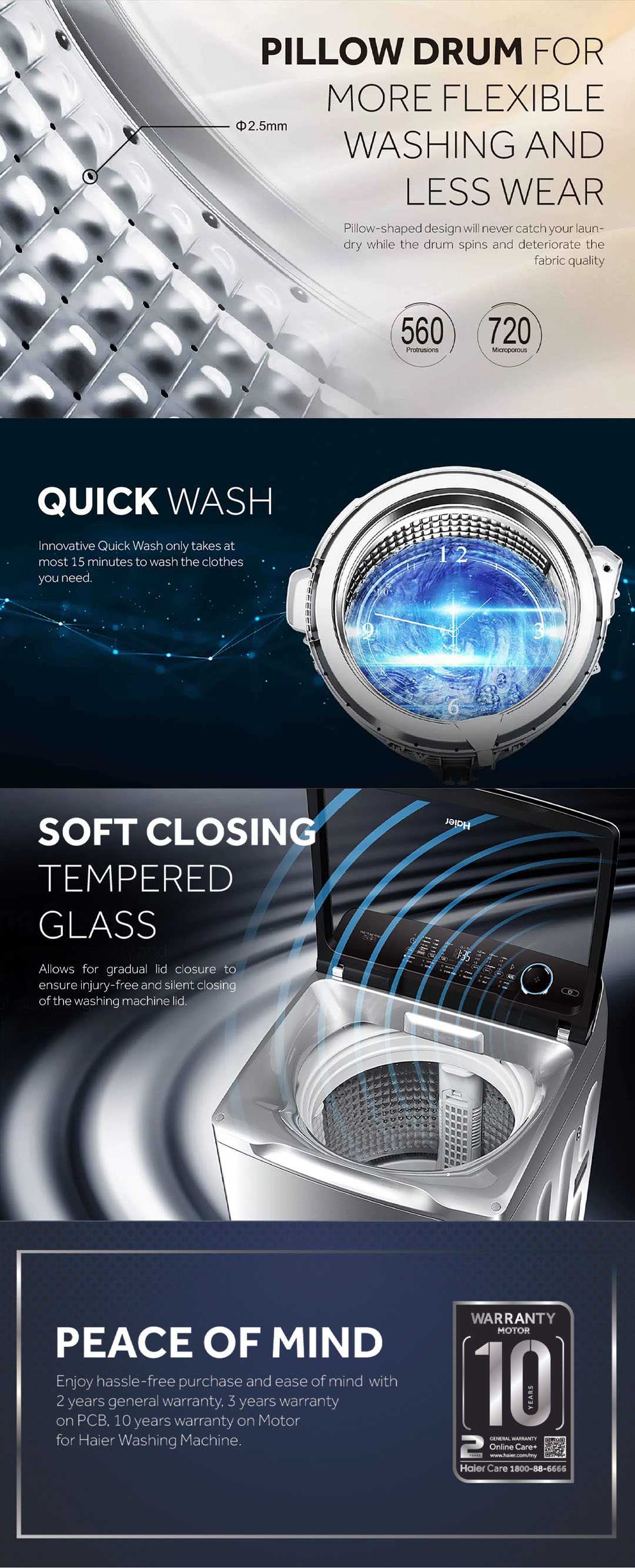 HAIER 15KG Top Load Washing Machines HWM150-1678ES6 | Rear Control Panel | Anti-Bacterial Pulsator | Pillow Drum | Washing Machine with 2 Year Warranty