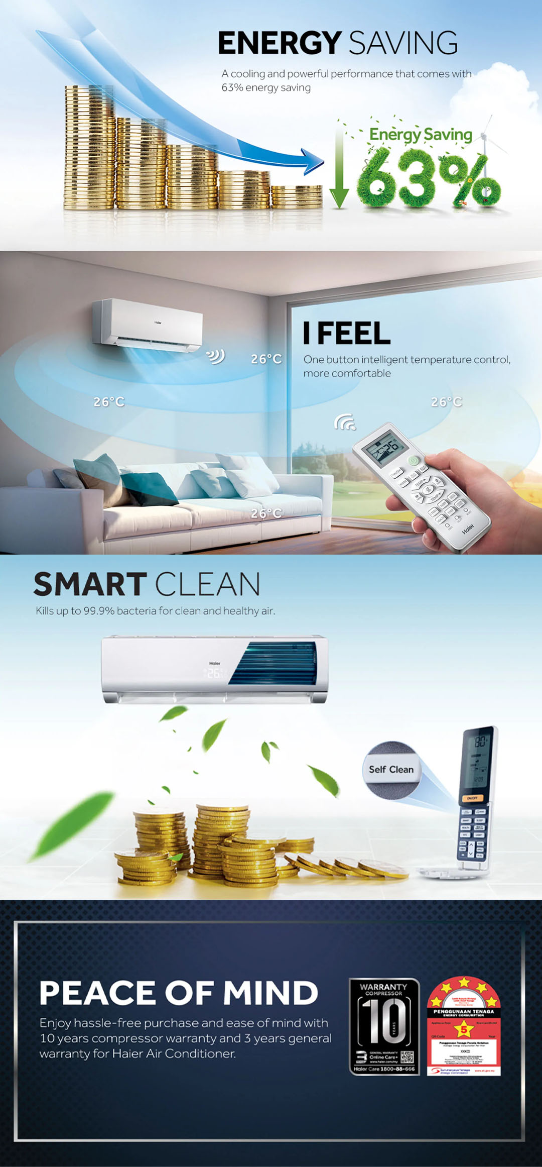 HAIER 1HP/1.5HP R32 UV Cool Inverter Wall Mount Air Conditioner HSU-10VXA21 / HSU-13VXA21 | Energy Saving | Smart Clean | Air Conditioner with 3 Year Warranty