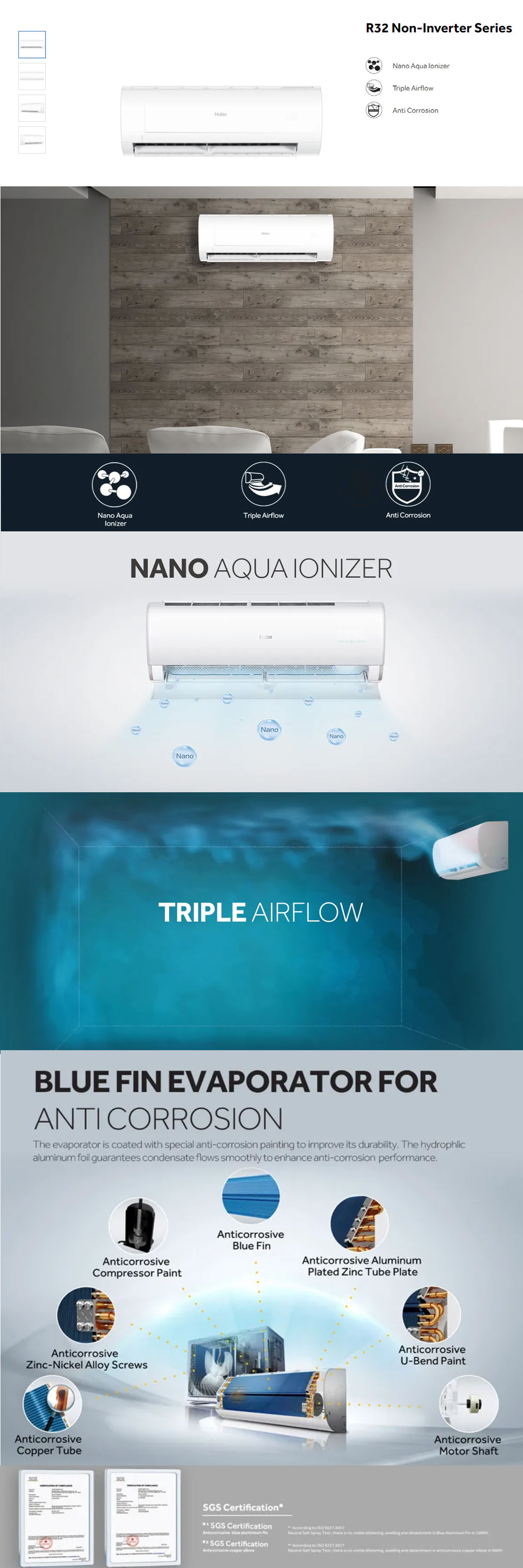 HAIER 1HP/1.5HP/2HP/2.5HP R32 Non-Inverter Wall Mount Air Conditioner HSU-10LPB21/HSU-10LPB21/HSU-13LPB21/HSU-19LPB21/HSU-25LPA21 | Nano Aqua Ionizer | Triple Airflow | Anti Corrosion | Air Conditioner with 3 Years Warranty