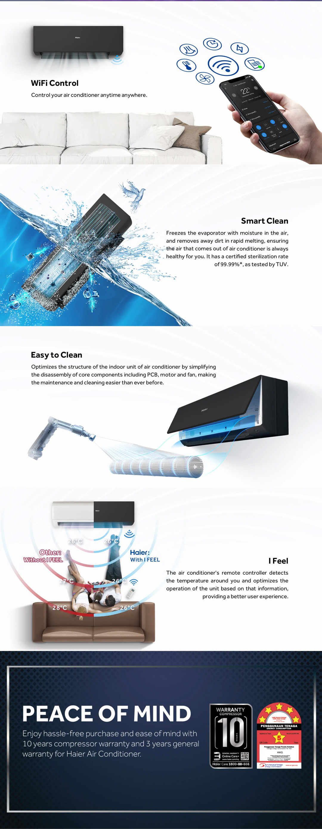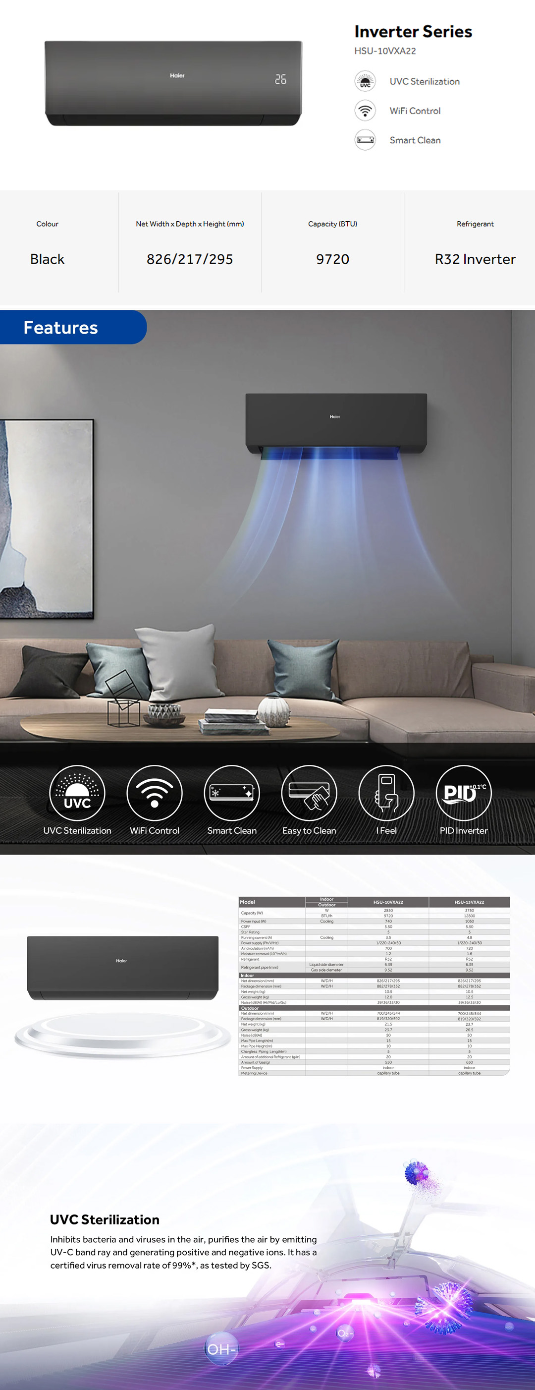 HAIER 1HP / 1.5HP R32 UV Cool Inverter Wall Mount Air Conditioner HSU-10VXA22 / HSU-10VXA22 | UVC Sterilization | WiFi Control | Smart Clean | Air Conditioner with 3 Year Warranty