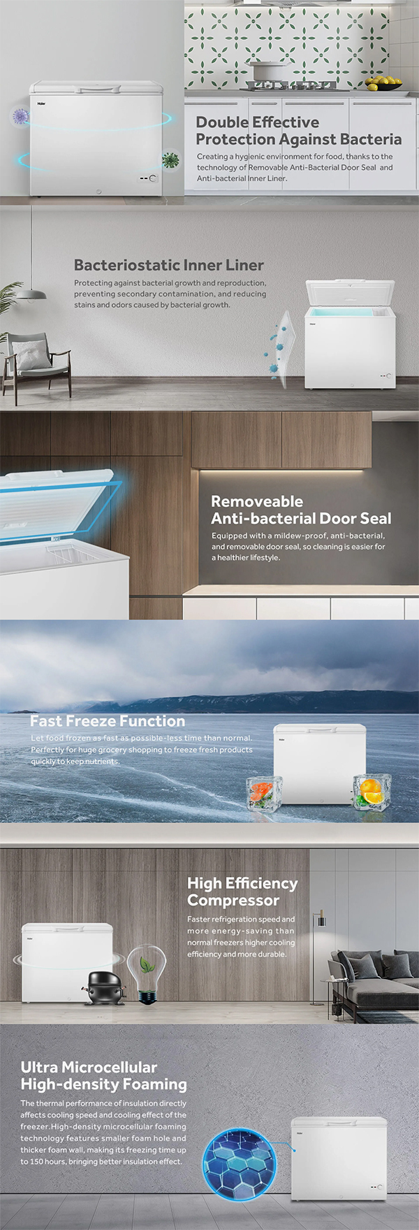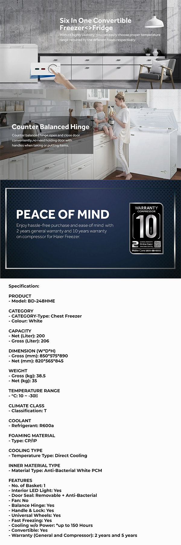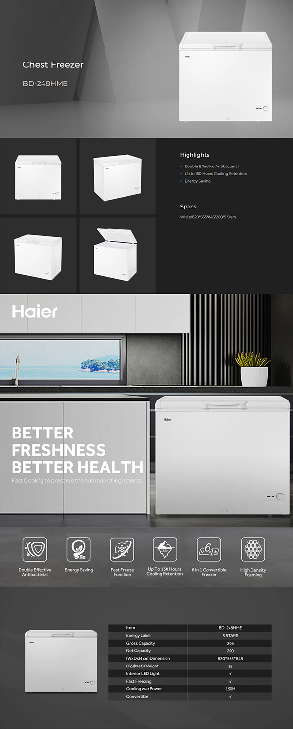 HAIER 206L Chest Freezer BD-248HME | Double Effective Protection Anti-Bacterial | Energy Saving