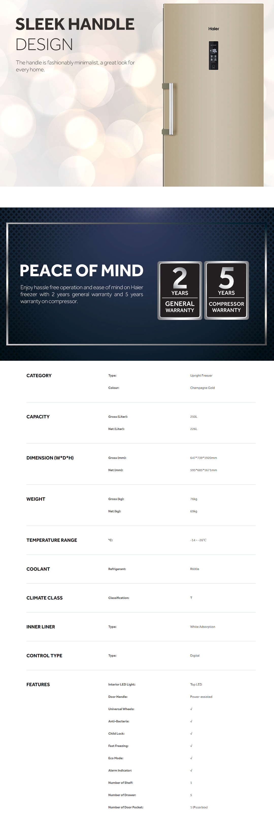 HAIER 250L Upright Freezer BD-248WL | Top LED | Anti-Bacteria | Child Lock | Fast Freezing | Eco Mode | Alarm Indicator | Digital Control | Chest Freezer with 2 Year Warranty