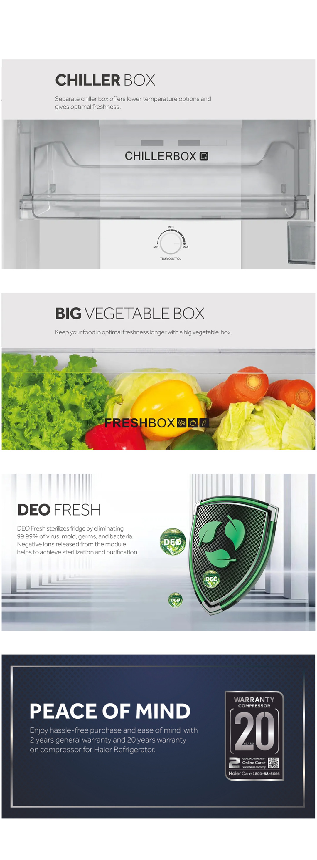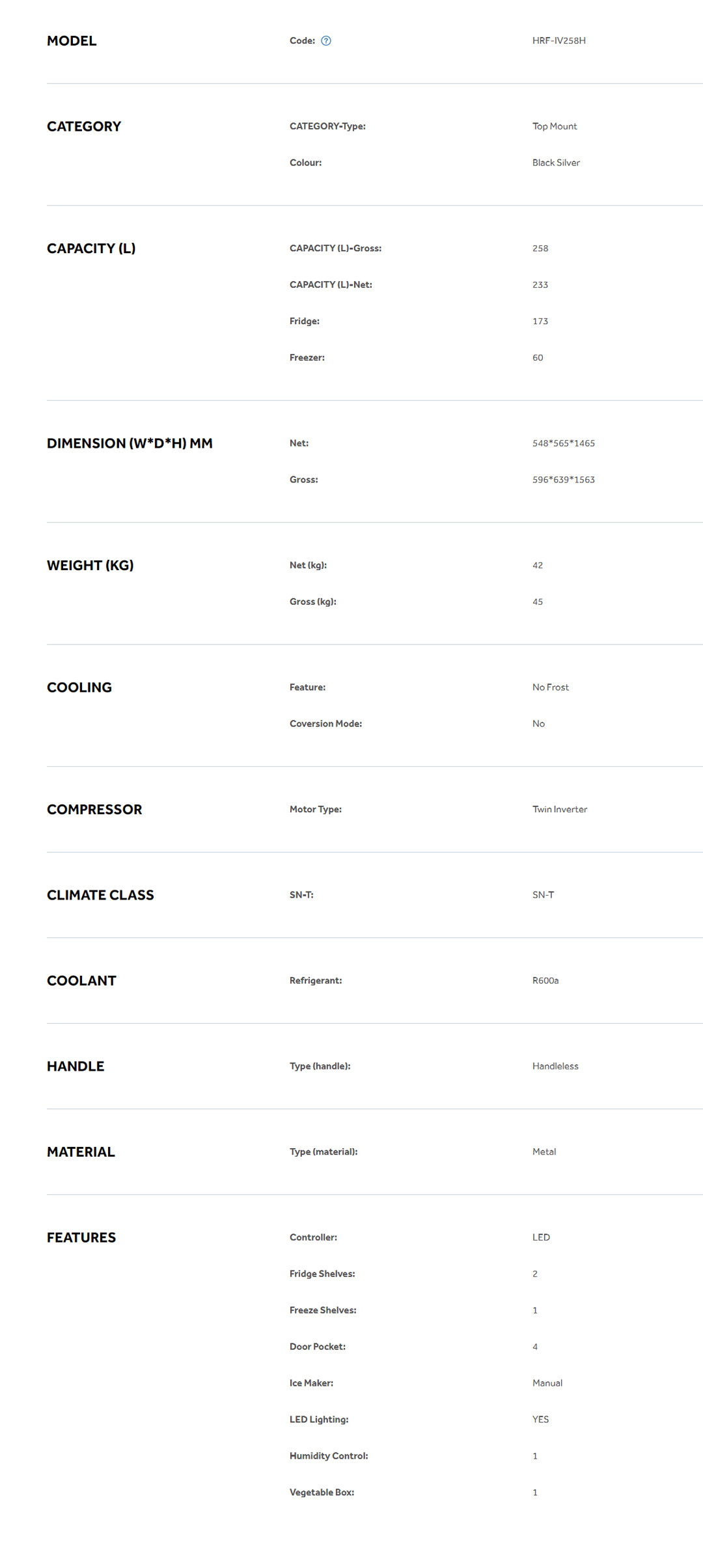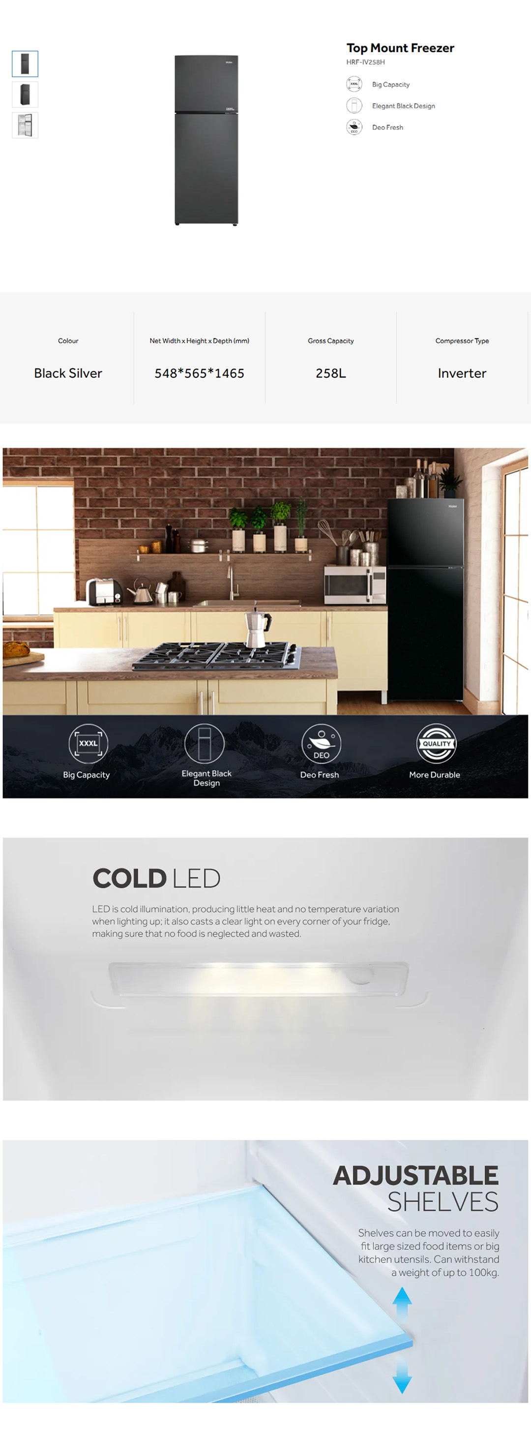 HAIER 258L 2 Doors Top Mount Inverter Refrigerator HRF-IV258H | Big Capacity | Elegant Black Design | Deo Fresh | Refrigerator with 2 Years Warranty