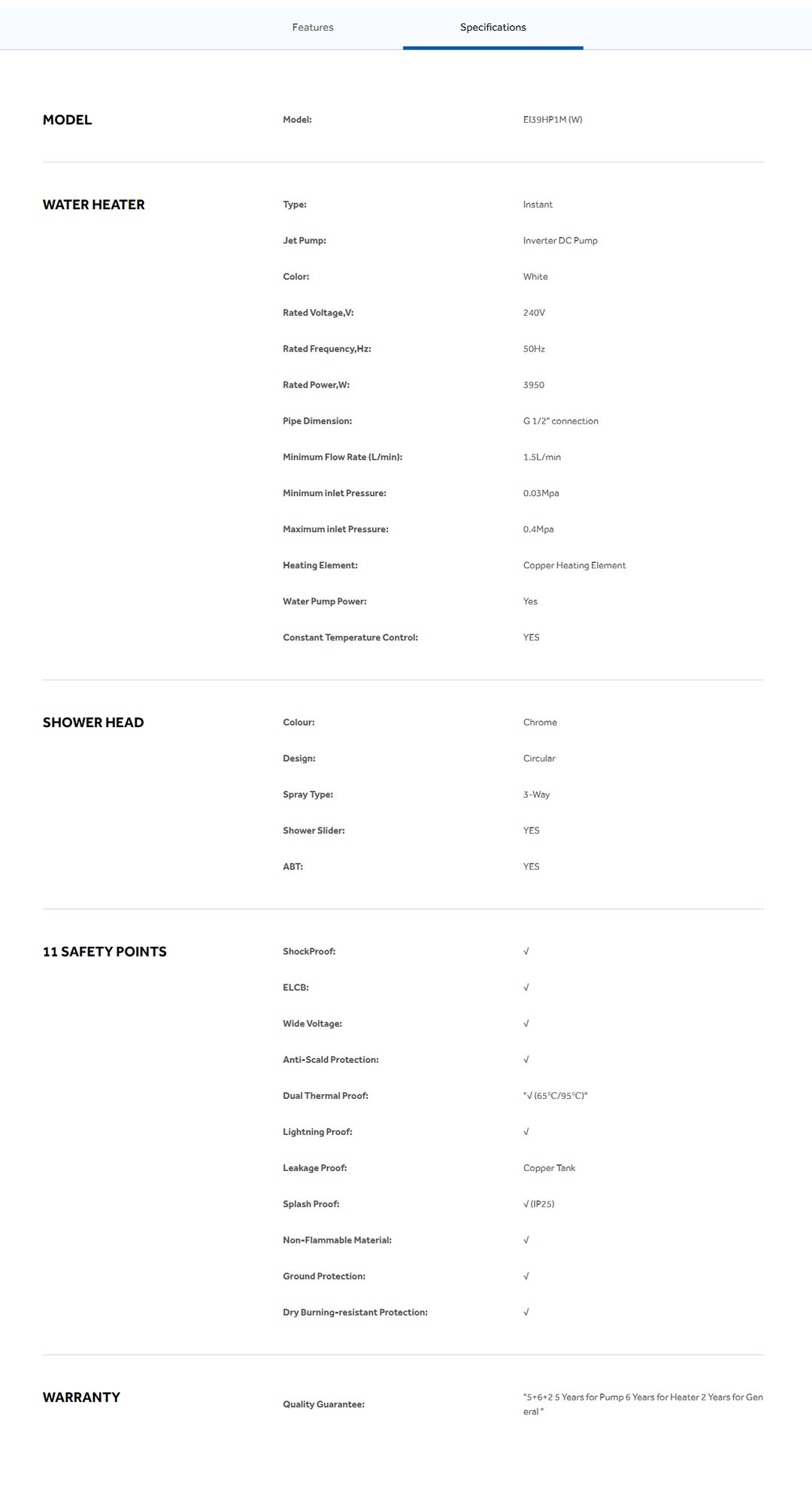 HAIER 3950W DC Inverter Pump Water Heater EI39HP1M(W) | Copper Heating Technology | 11 Safety Features | ABT 99.9% | Water Heater with 2 Year Warranty
