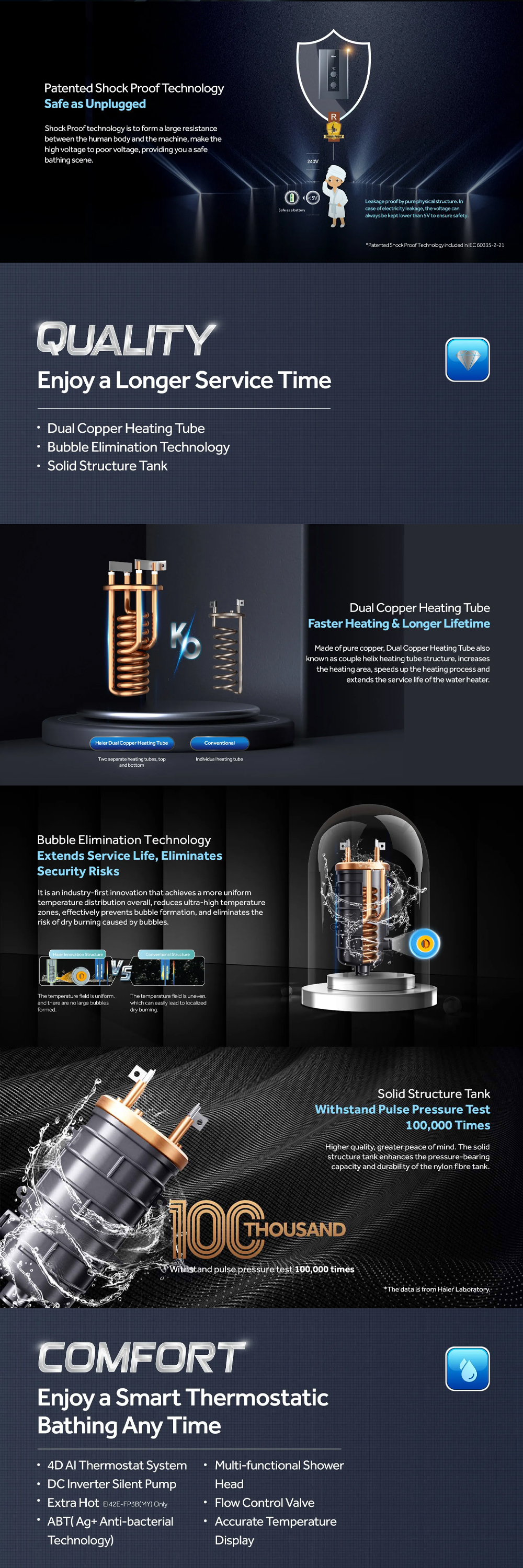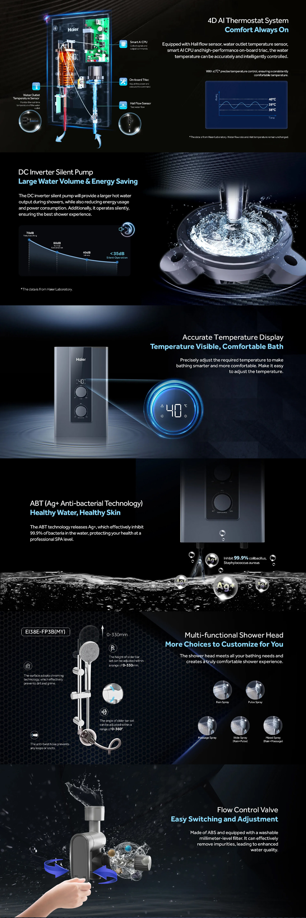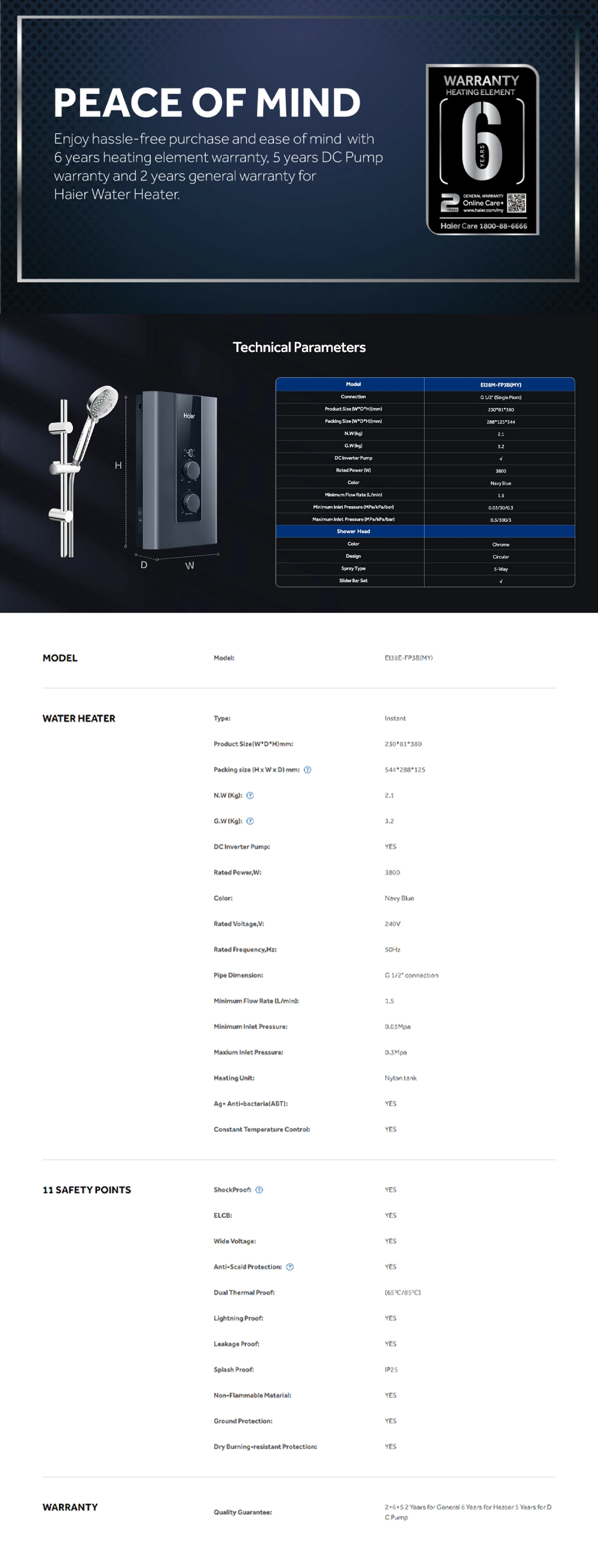 HAIER 3800W DC Inverter Silent Pump Instant Water Heater EI38E-FP3B(MY) | Shock Proof | Solid Structure Tank