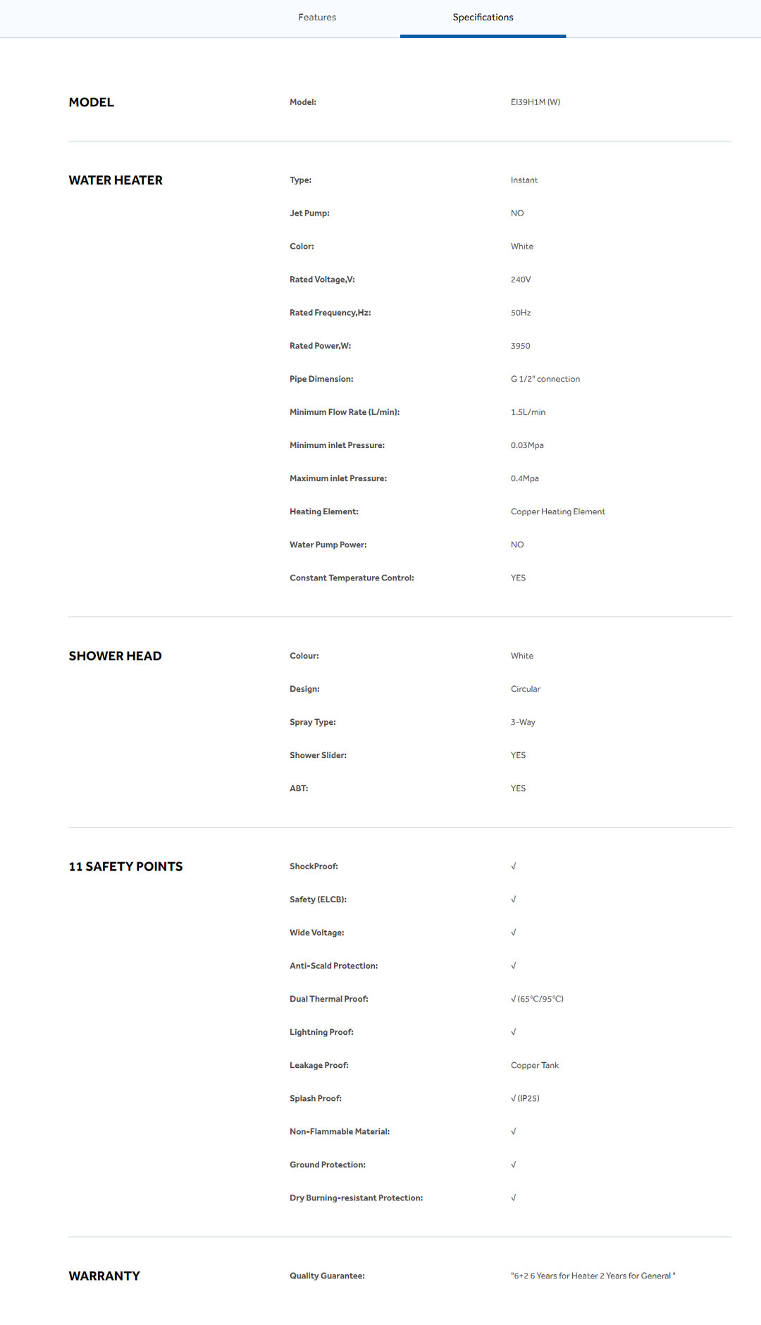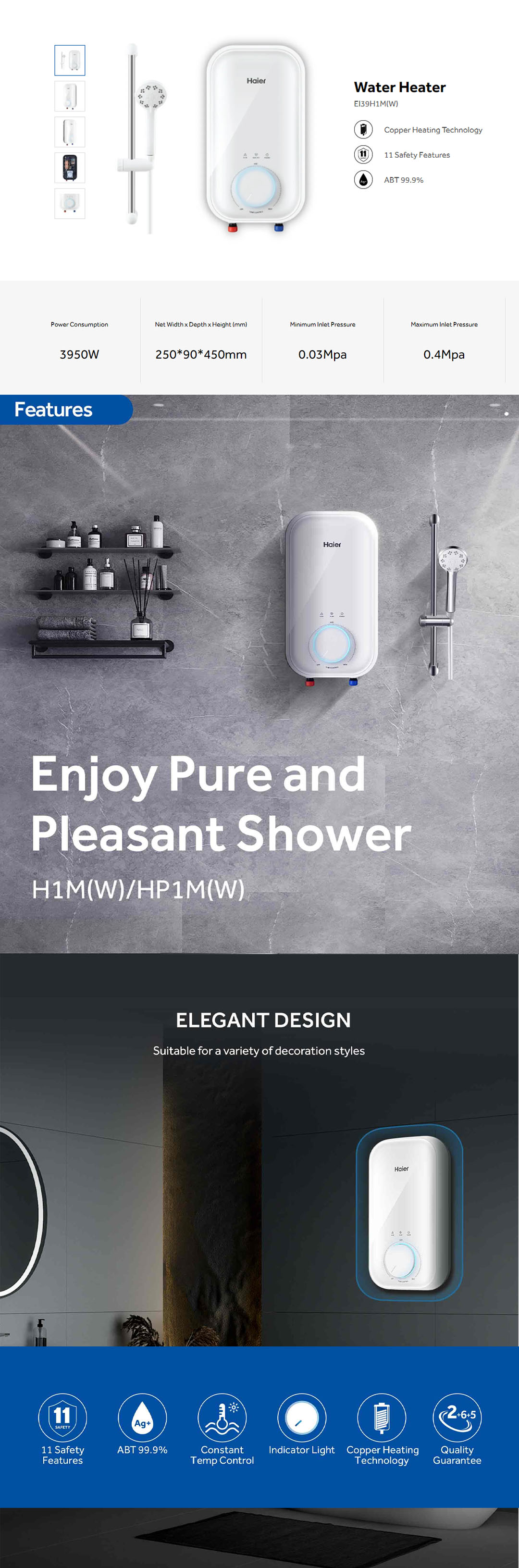 HAIER 3950W DC Inverter Pump Water Heater EI39H1M(W) | Copper Heating Technology | 11 Safety Features | ABT 99.9% | Water Heater with 2 Year Warranty