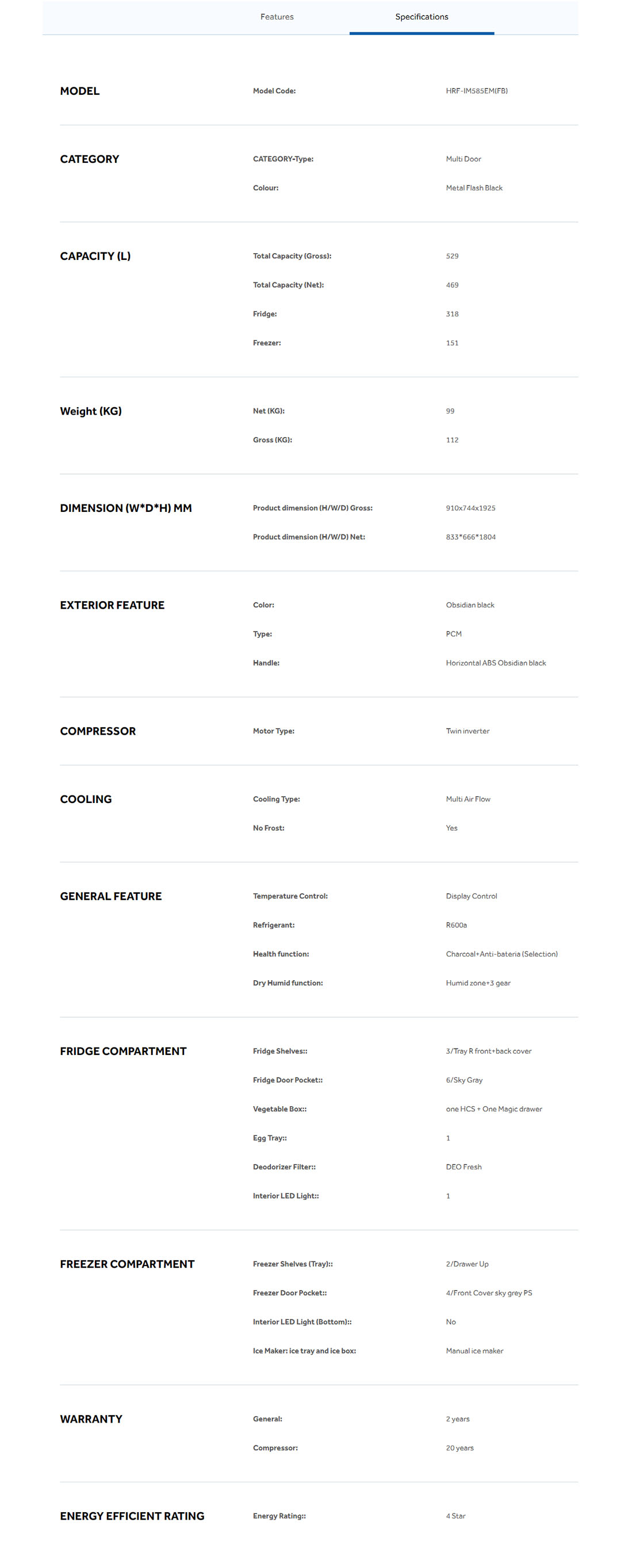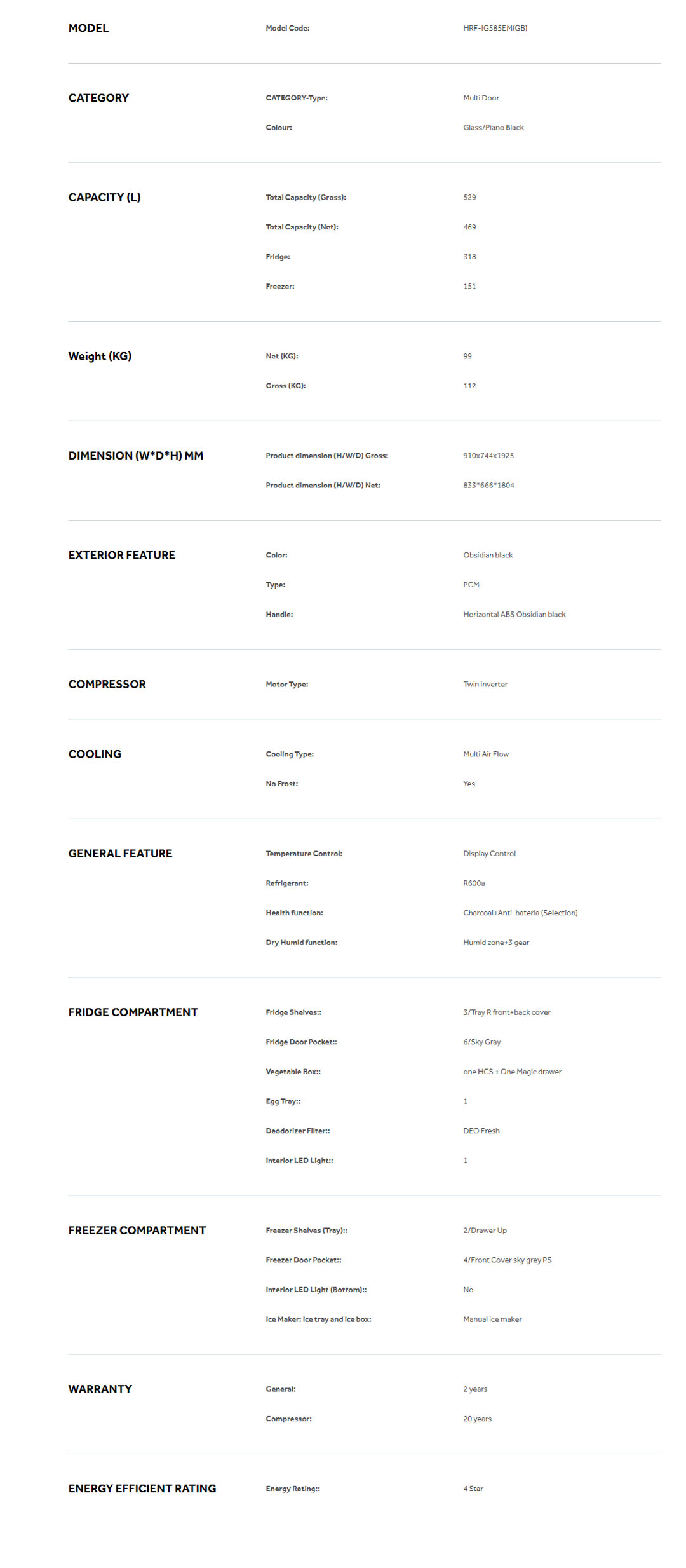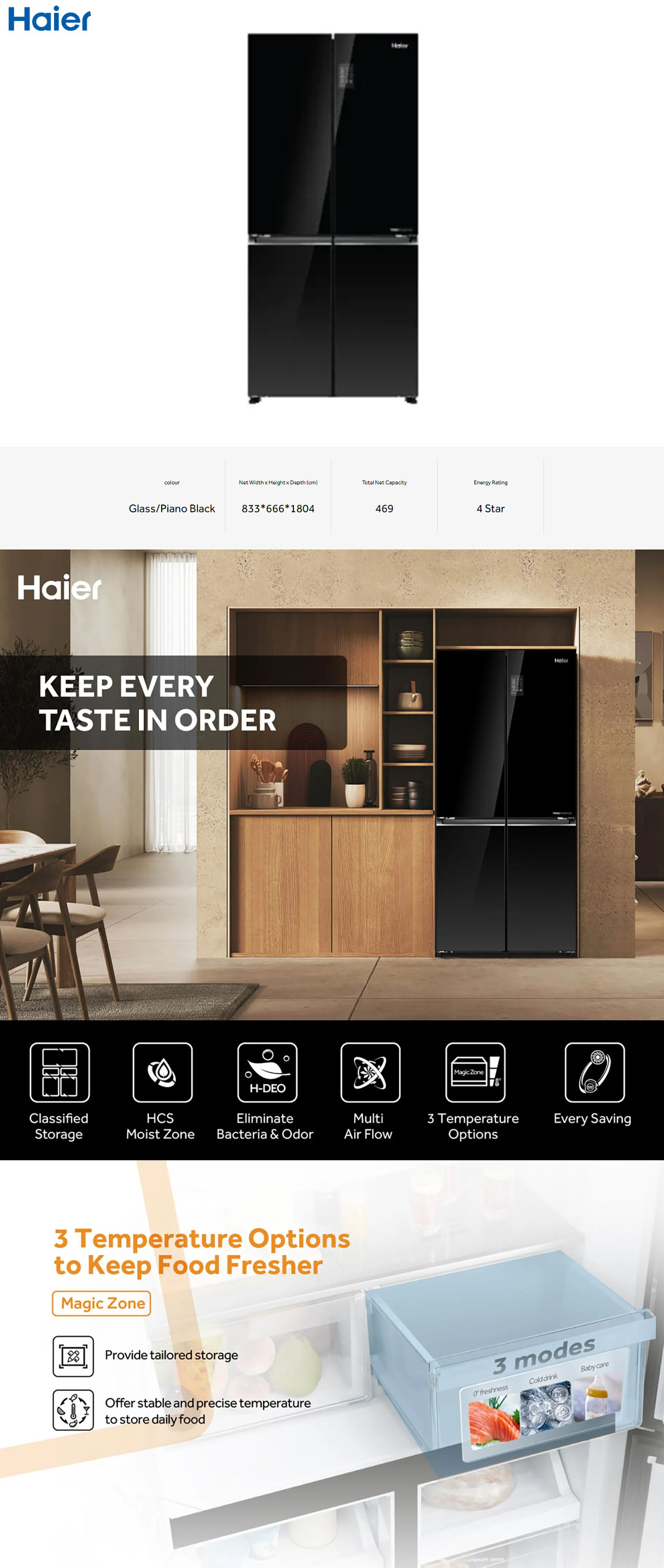 HAIER 529L Inverter Multi Doors Refrigerator HRF-IM585EM(FB)/HRF-IG585EM(GB) | Digital Touch Screen | Flexible Shelves | 3 Temperature Options | Refrigerator with 2 Year Warranty