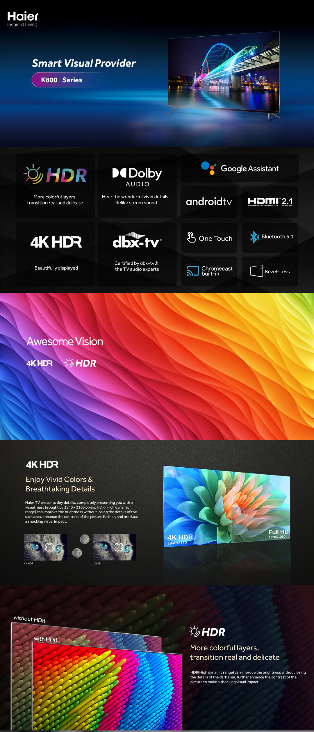 HAIER 50" /55" / 65" 4K HDR Google TV | H50K800UG / H55K800UG / H65K800UG | Awesome Vision | Natural Audio | One Touch | Google TV with 2 Year Warranty