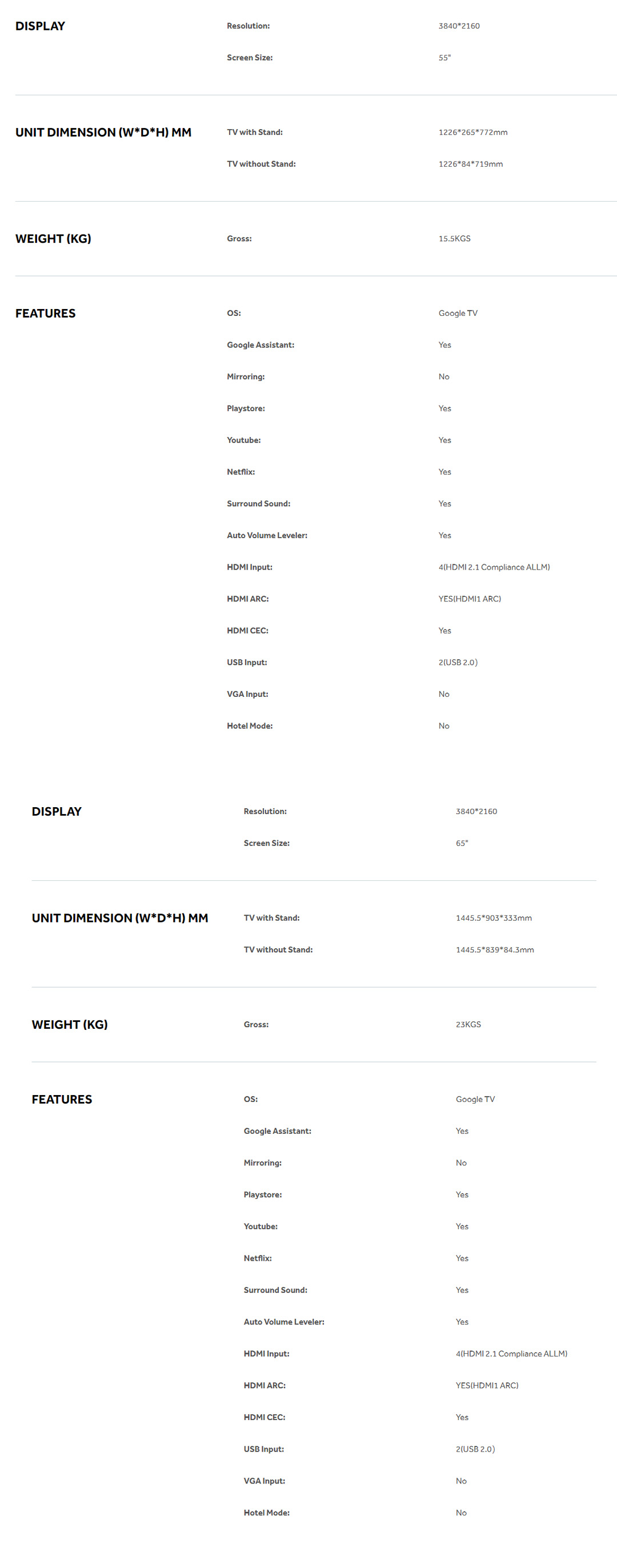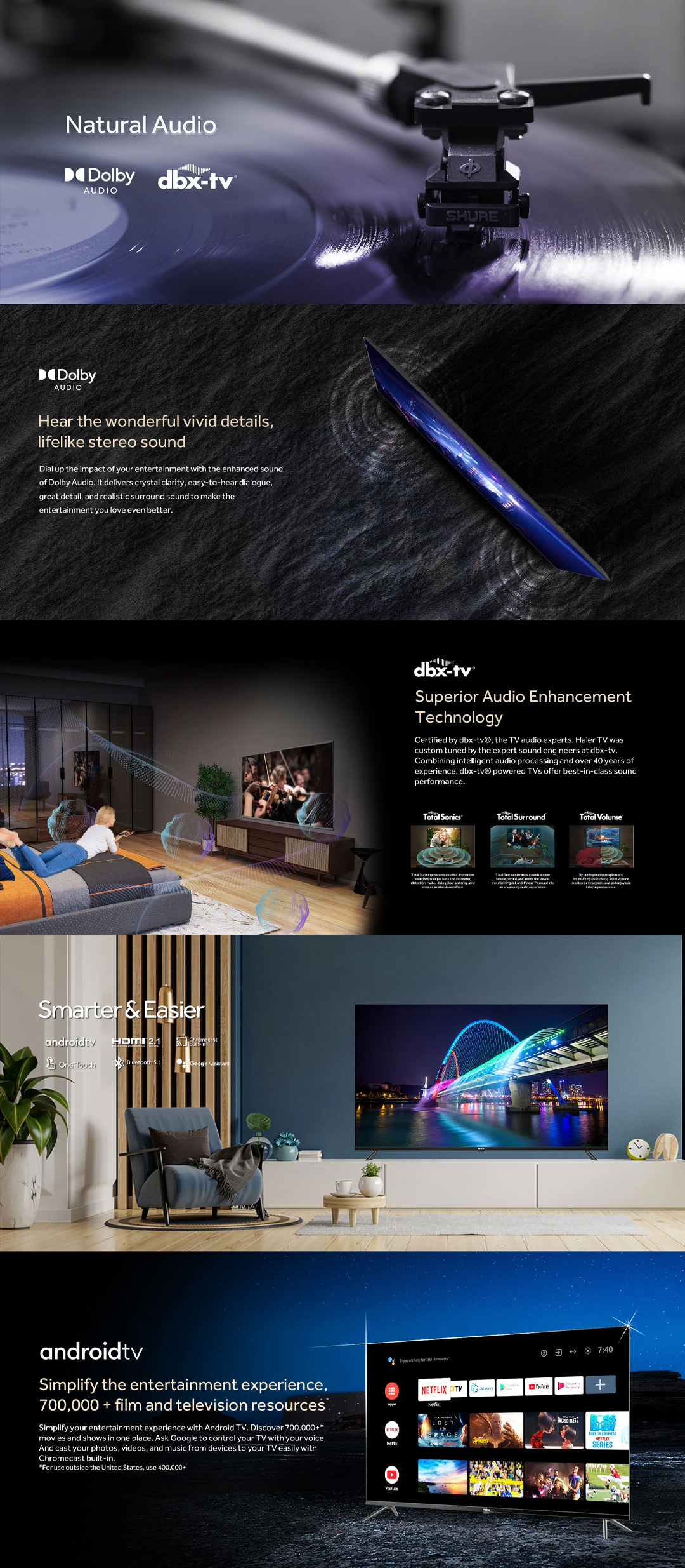 • Bezel-Less Design • Google Assistant • dbx-TV