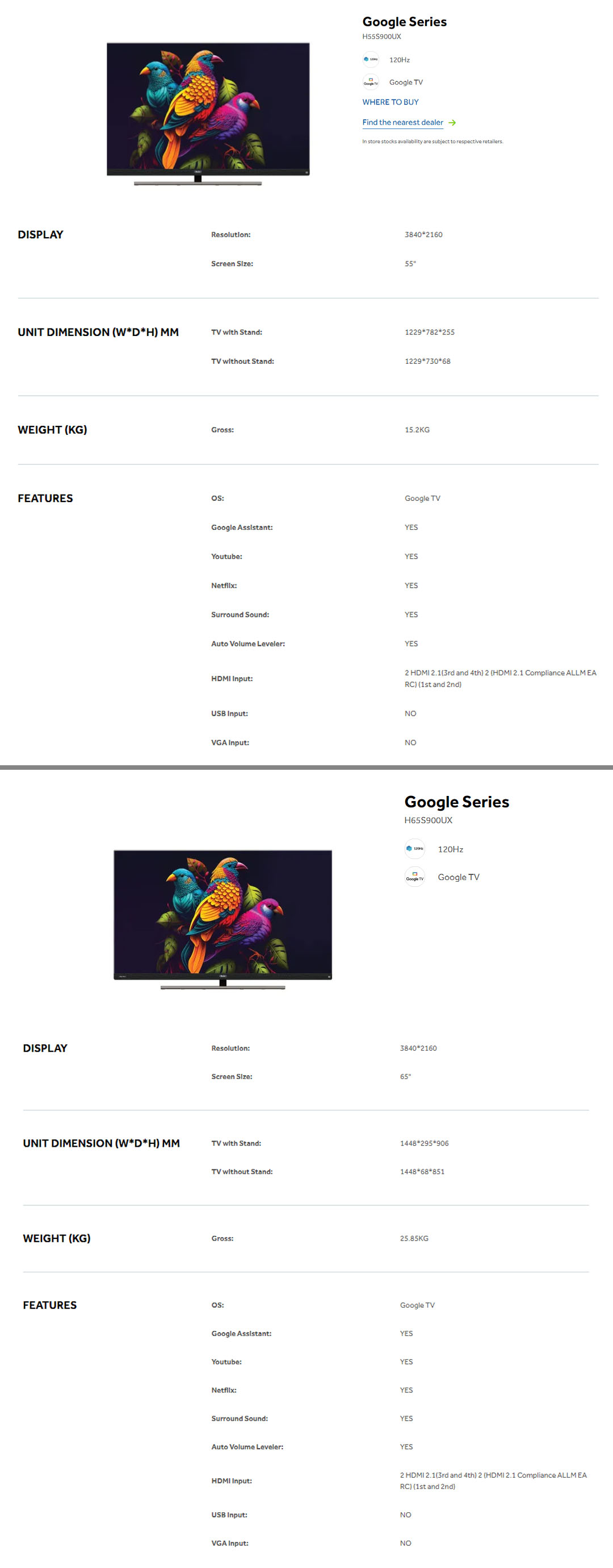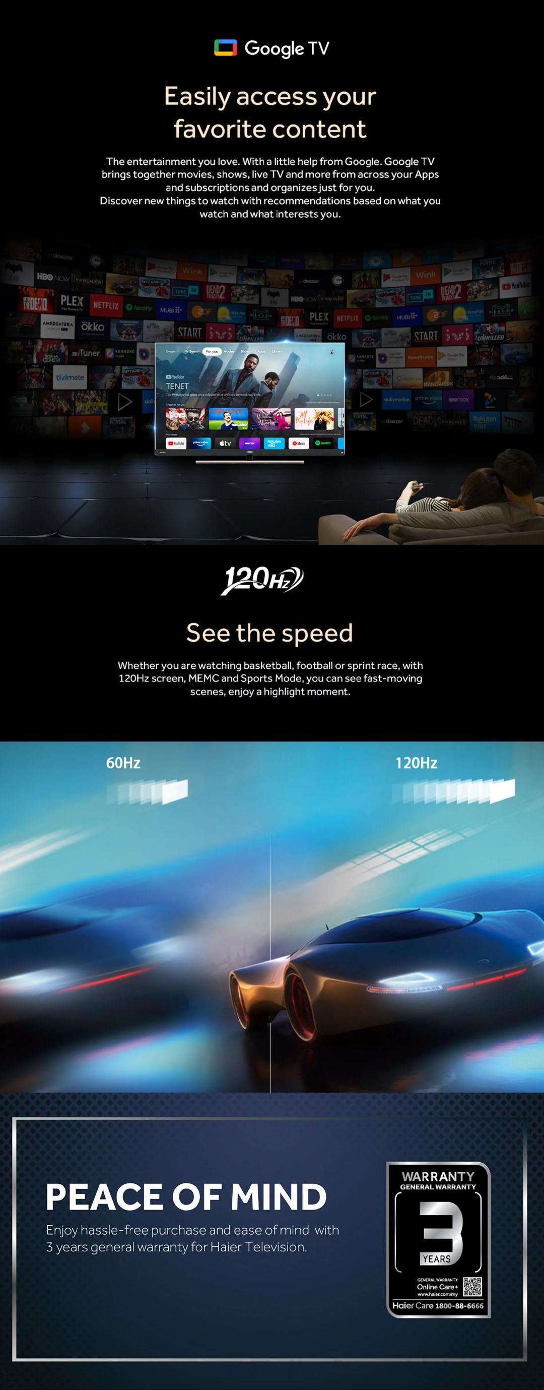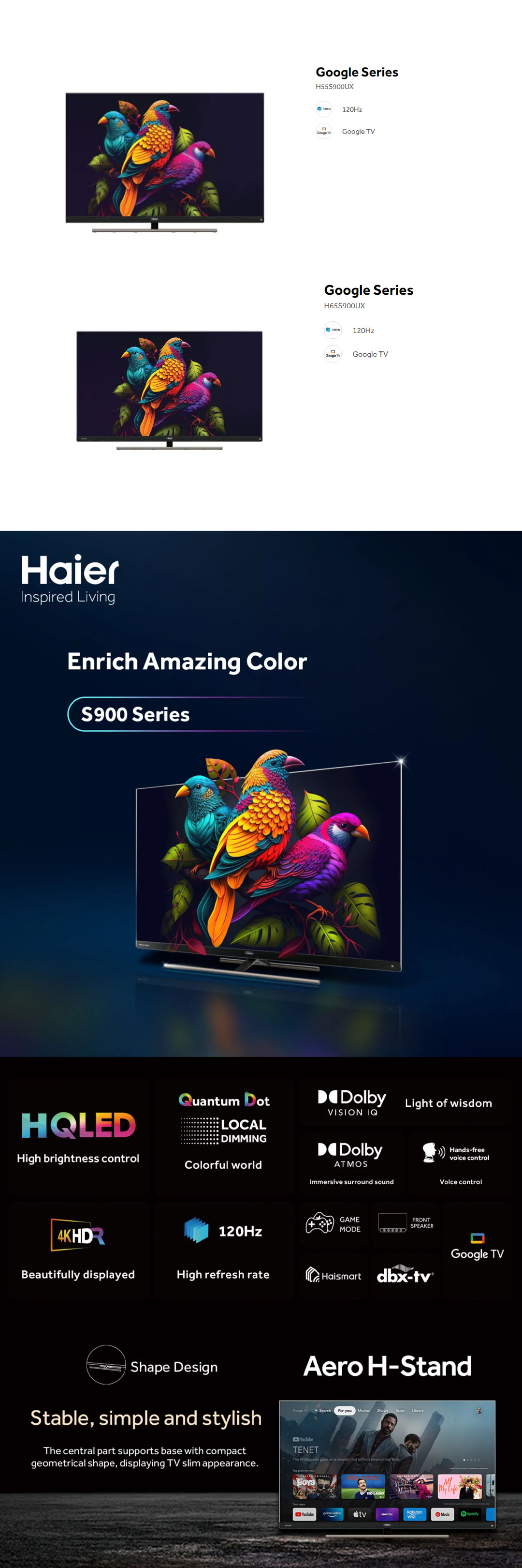 HAIER 55"/65" 4K UHD Google HQLED TV H55S900UX/H65S900UX | Dolby Vison & Dolby Atmos | 4K HDR | Google TV | Aero H-Stand | Smart Television with 3 Years Warranty