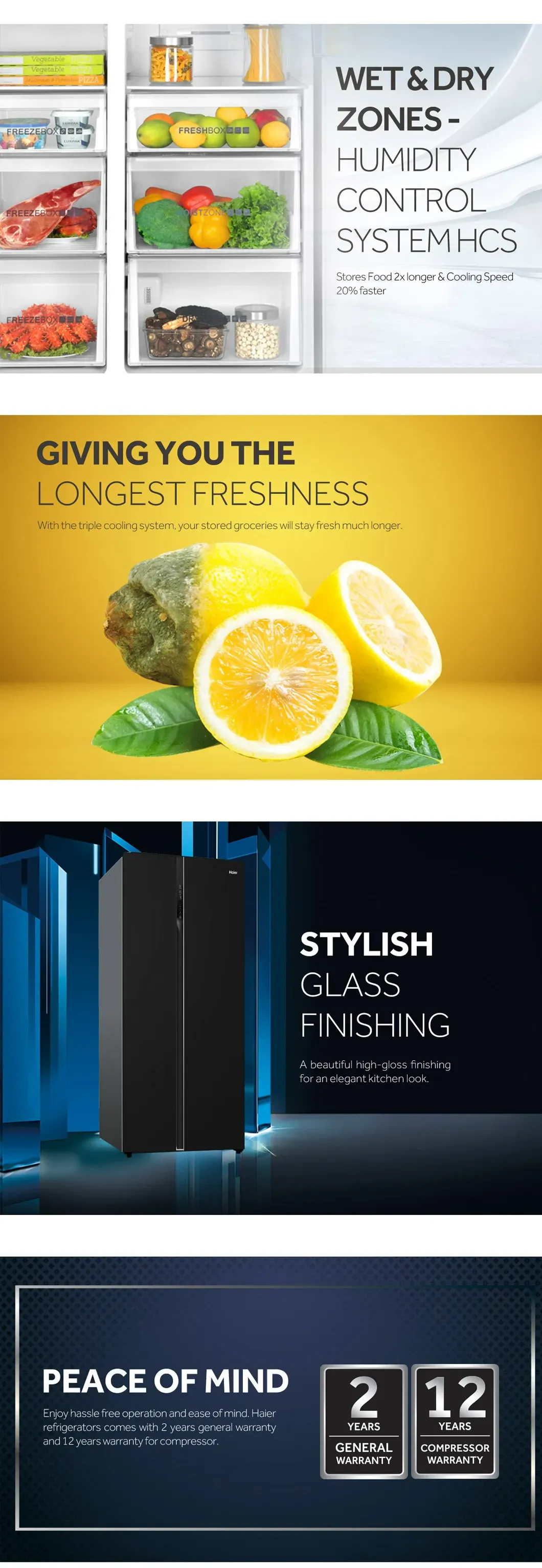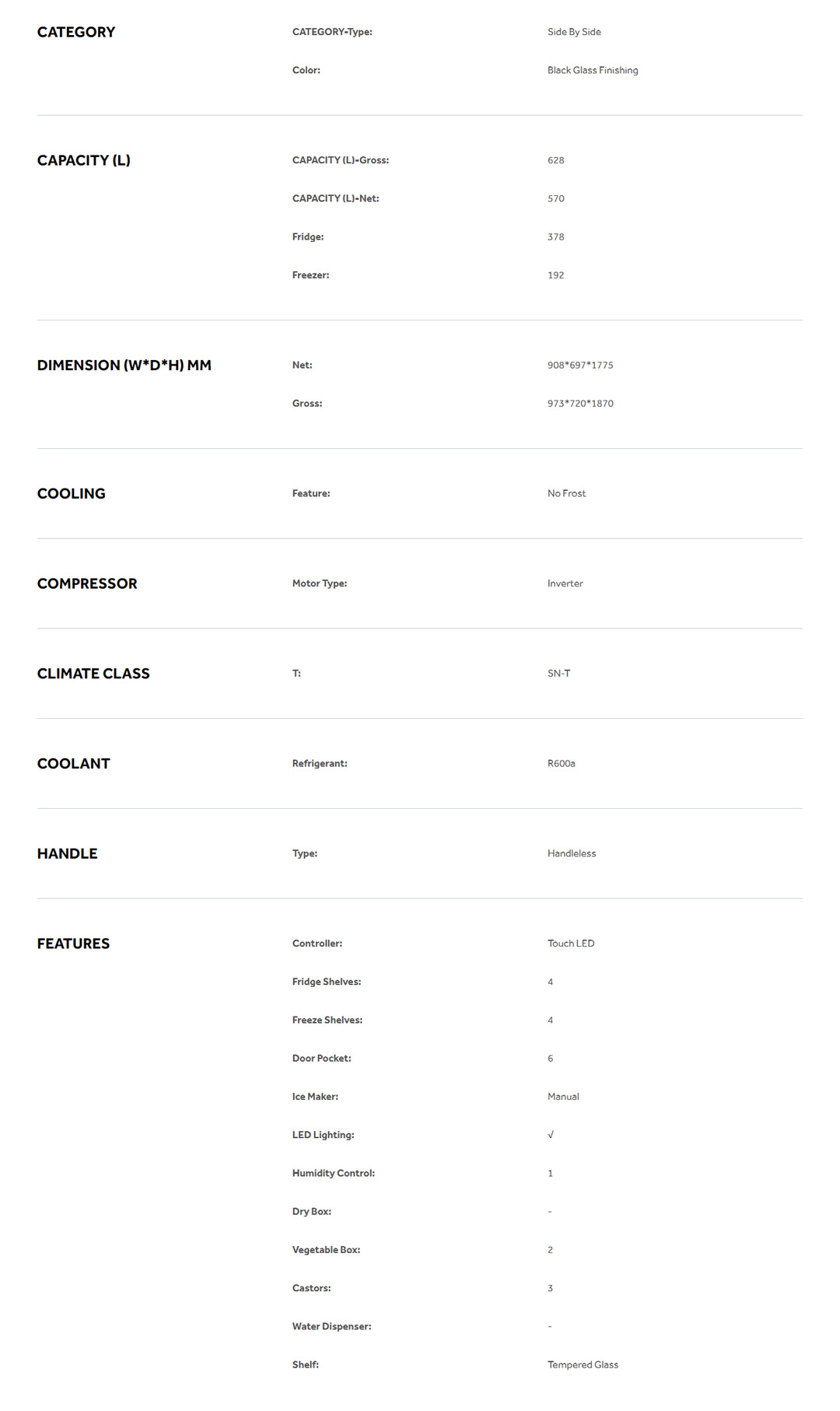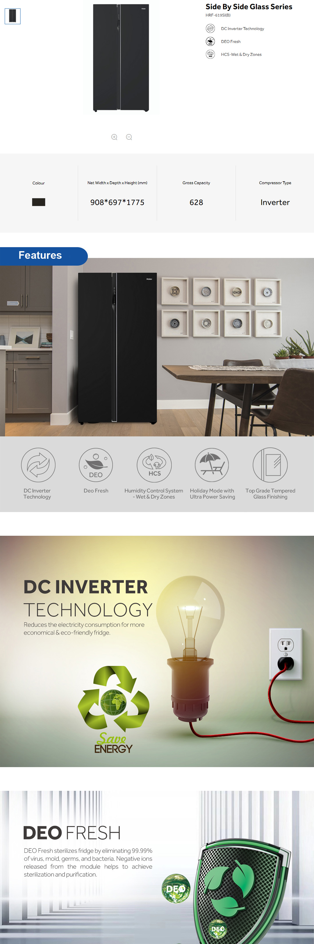 HAIER 628L Side By Side DC Inverter Refrigerator HRF-619SI(B) | No Frost | Touch LED | Door Pocket | Ice Maker | Humidity Control | Refrigerators with 2 Years Warranty