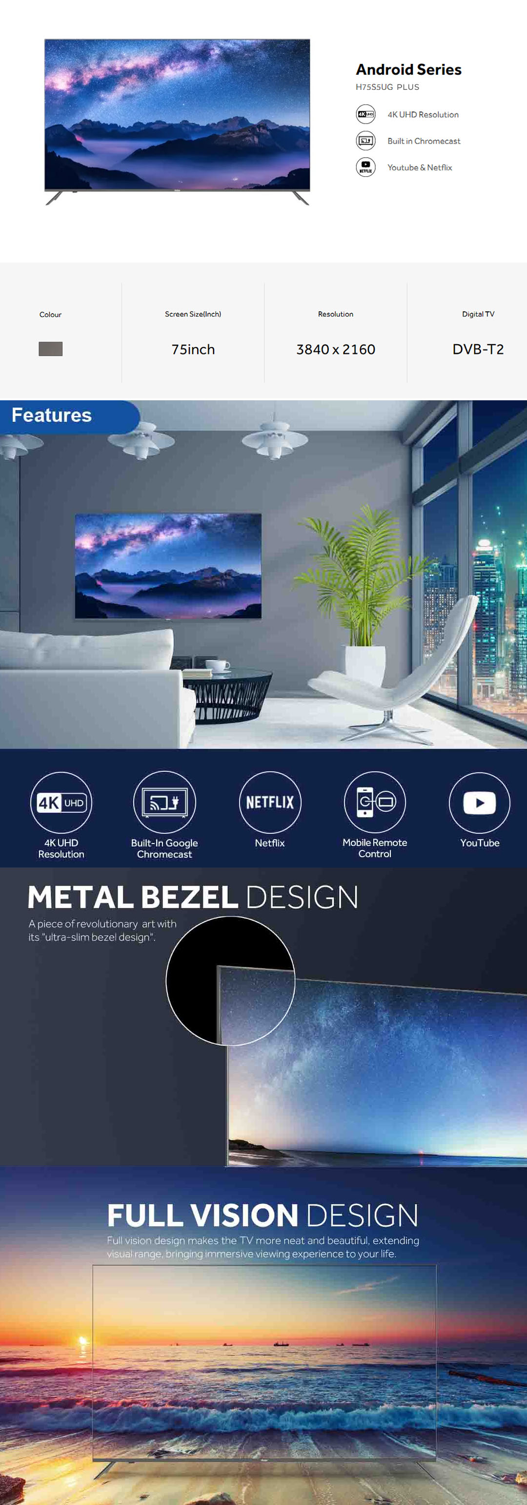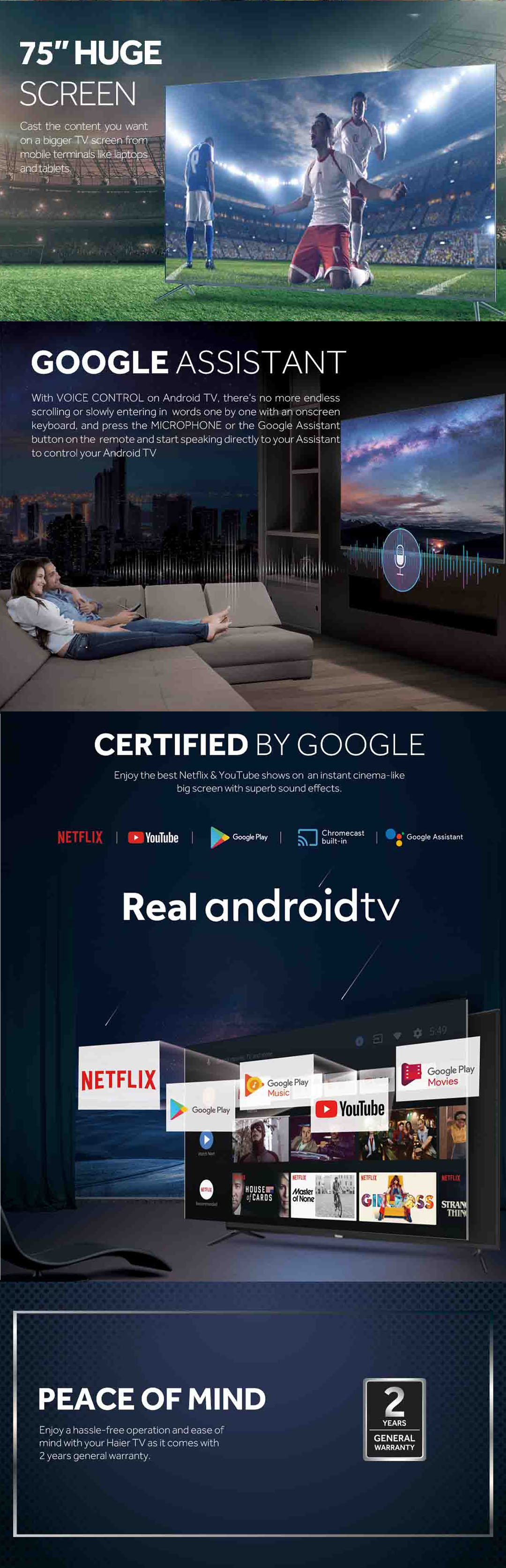 HAIER 75" 4K UHD Android LED TV H75S5UG PLUS | Youtube | Netflix | 4K UHD Resolution | Built in Chromecast | Mobile Remote Control | Android LED TV with 2 Year Warranty