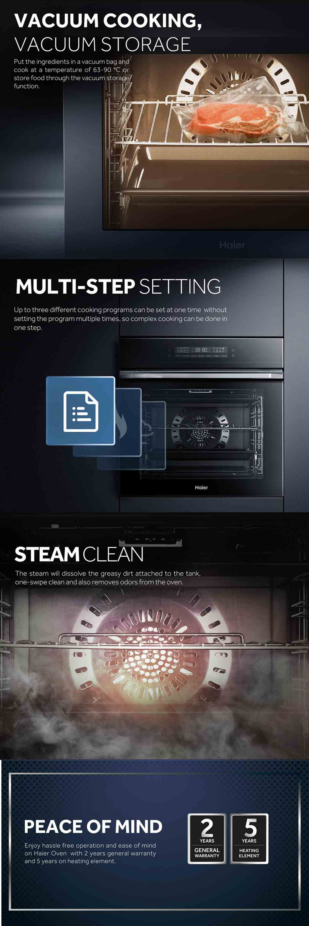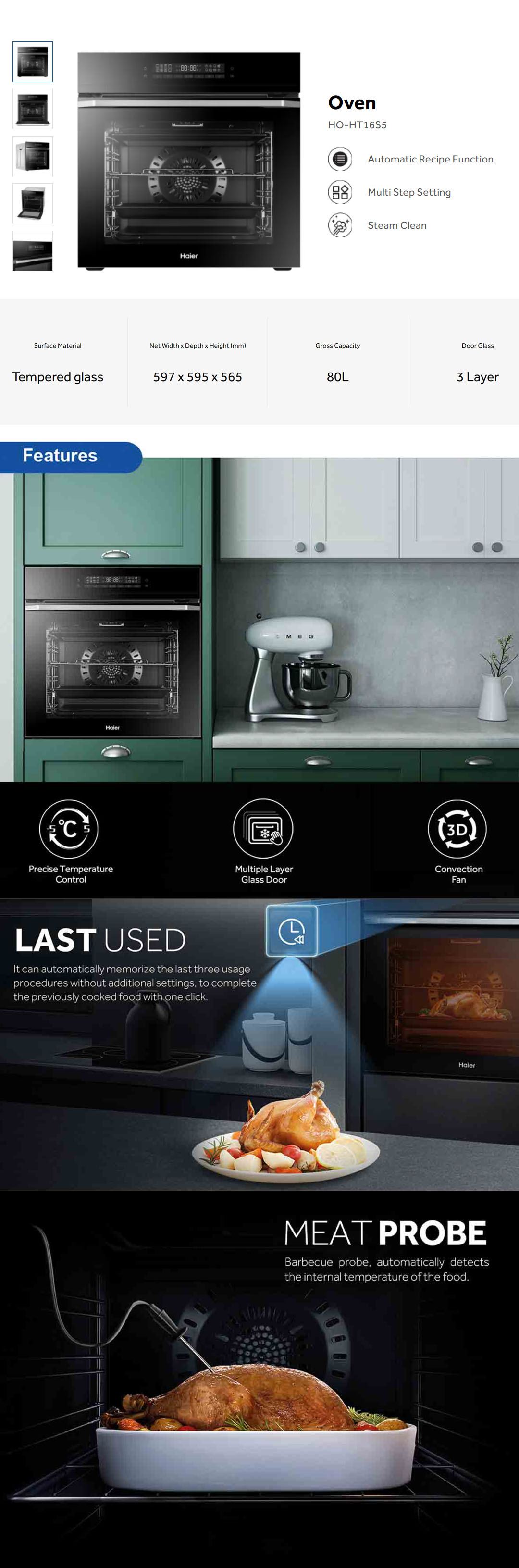 HAIER 80L Built-In Oven HO-HT16S5 | Automatic Recipe Function | Multi Step Setting | Steam Clean | Oven with 2 Year Warranty