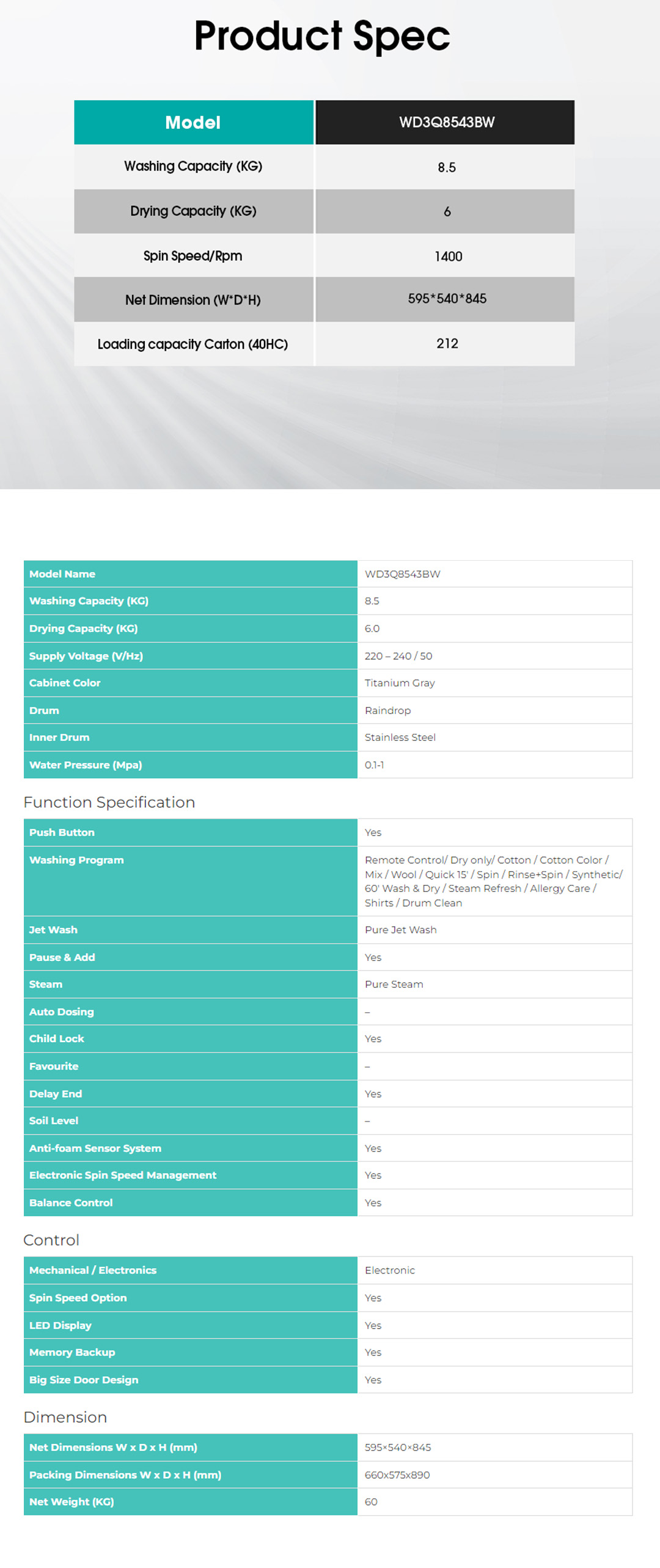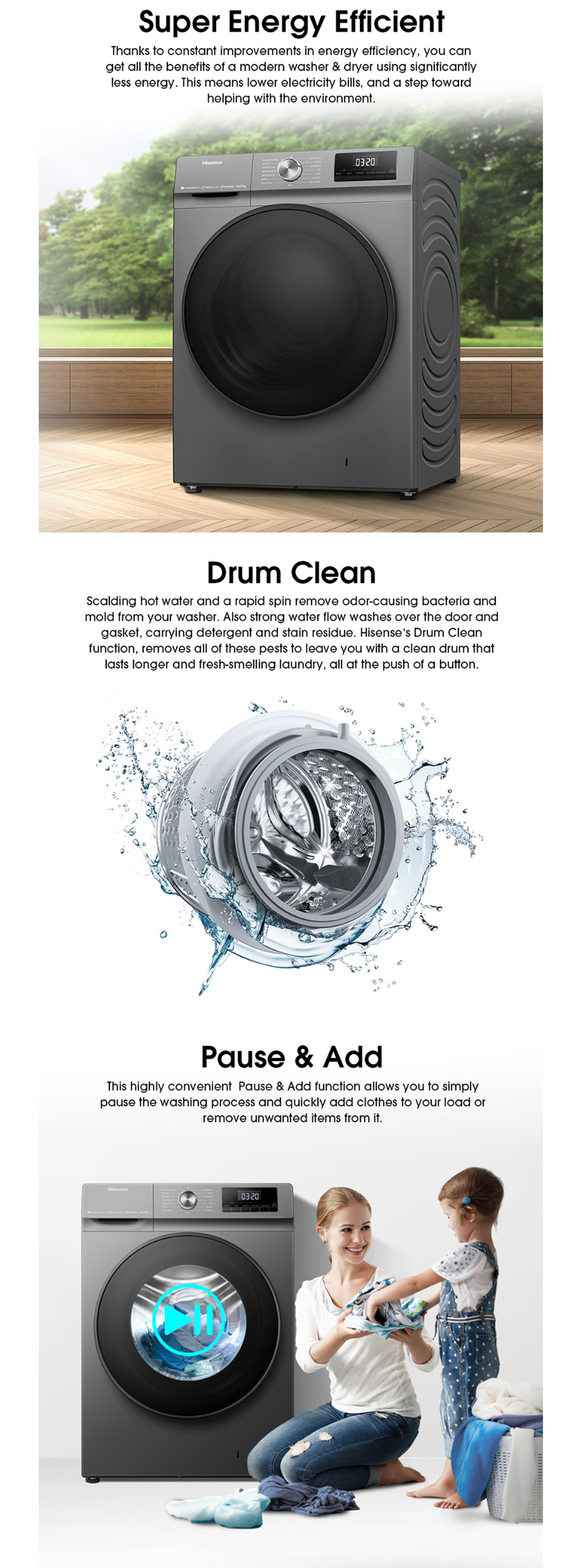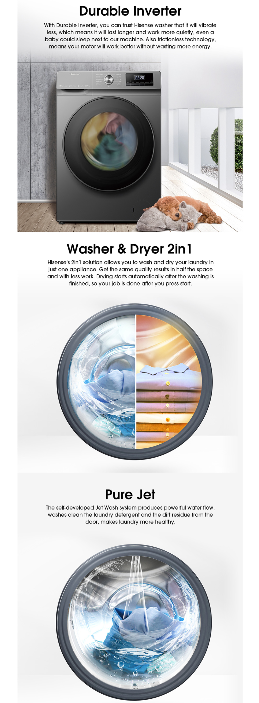 HISENSE 10.5KG/7KG Front Load DD Inverter Washer Dryer WD3Q1043BT | DD Inverter | WIFI Control | Pure Steam | Washer Dryer with 2 Years Warranty