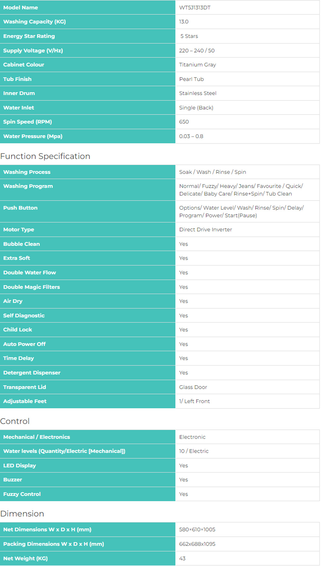HISENSE 13KG Top Load DD Inverter Washing Machine WT5J1313DT | Powerful Waterfall | Smart Water Control | Tub Clean | Delay End | Memory Function | Soak Function | Mega Capacity | Bubble Clean | Extra Soft | Air Dry | Washing Machine with 2 Year Warranty