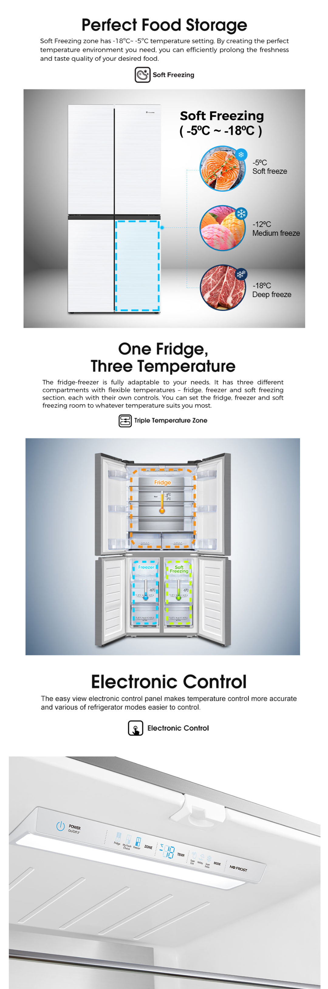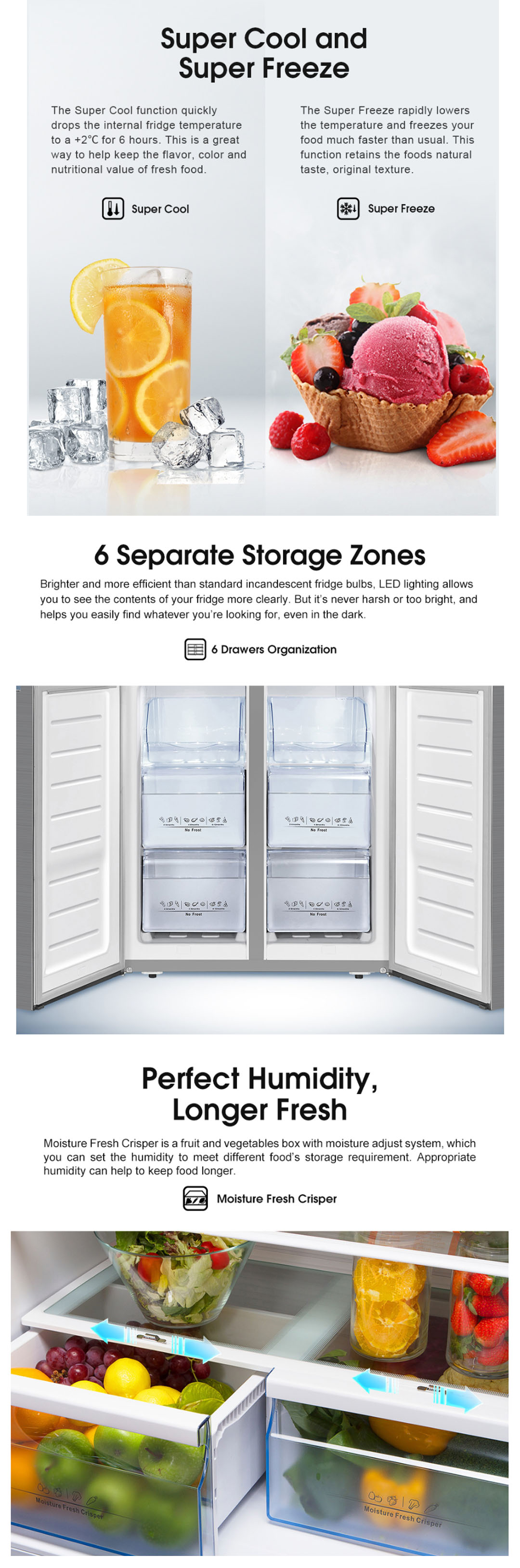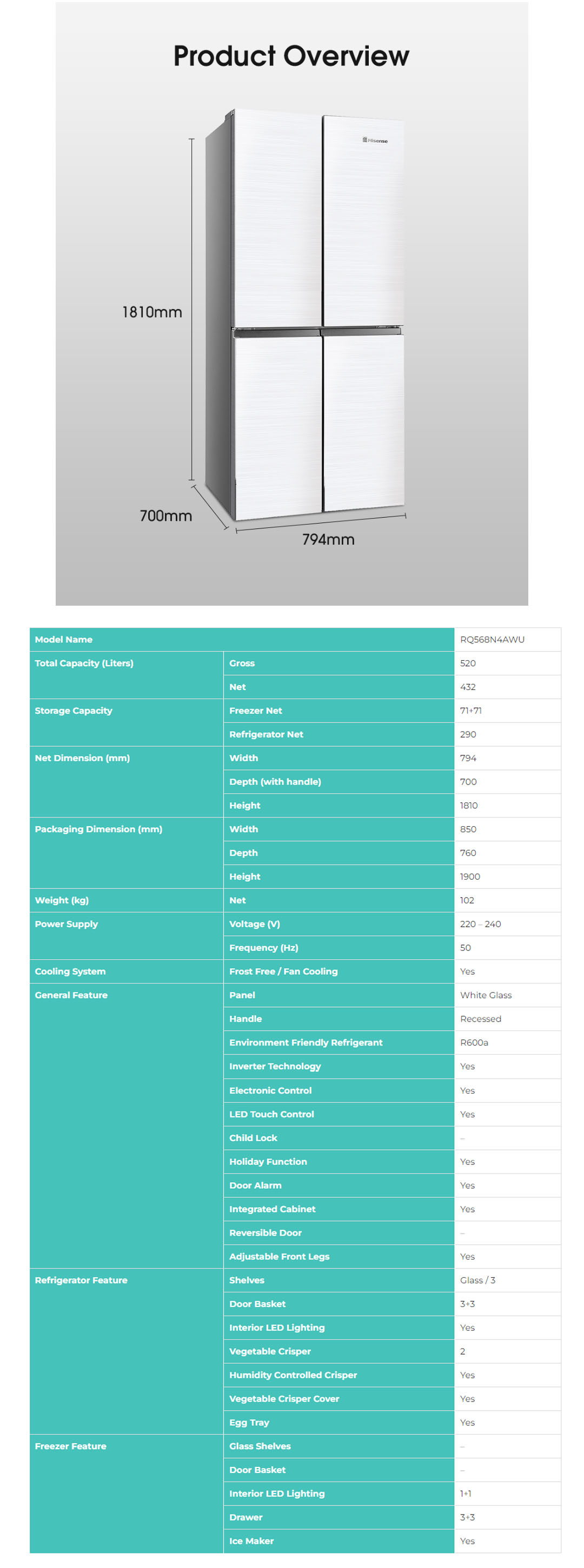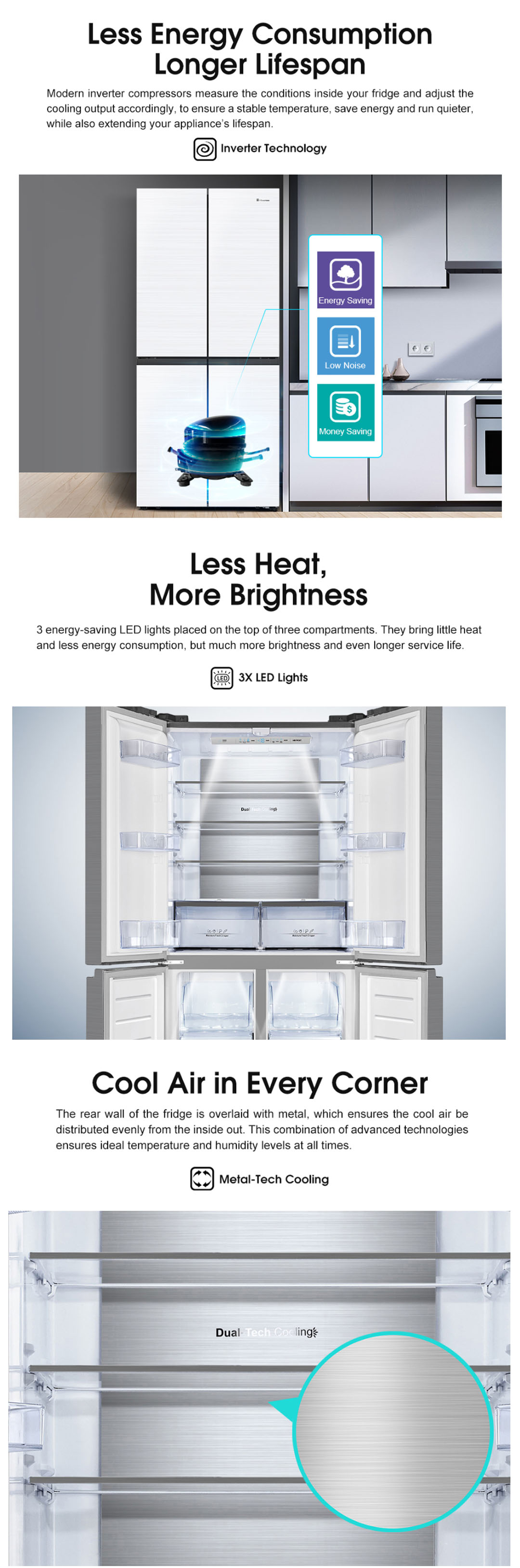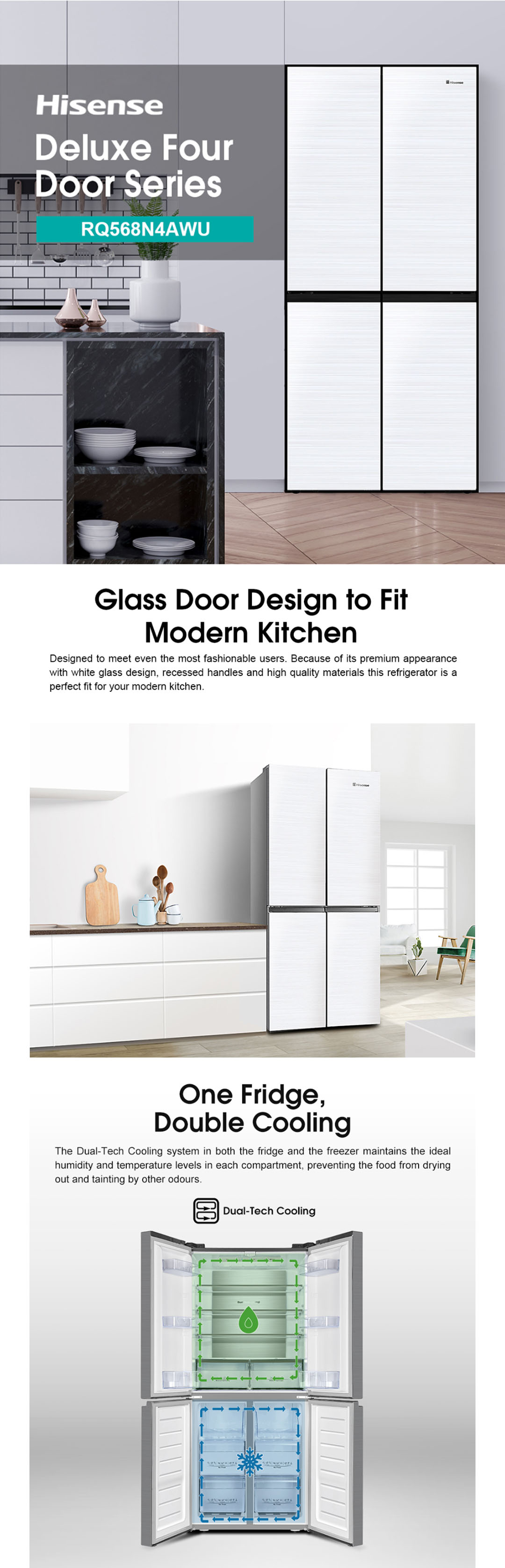 HISENSE 520L Four Doors Inverter Refrigerator RQ568N4AWU | Double Cooling | Metal-Tech Cooling | Metal Glide Drawer | Led Lighting | Refrigerator with 3 Years Warranty