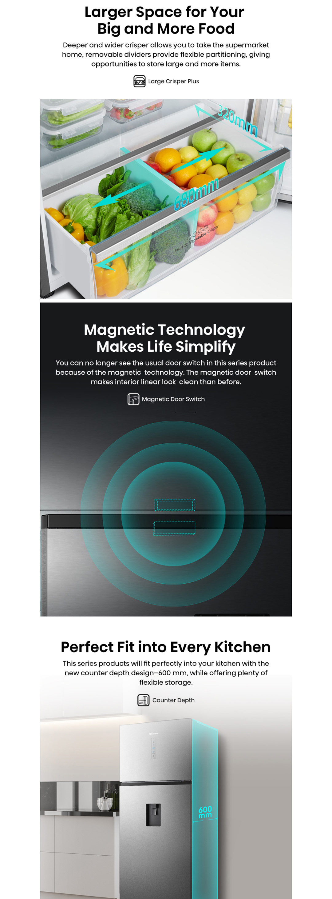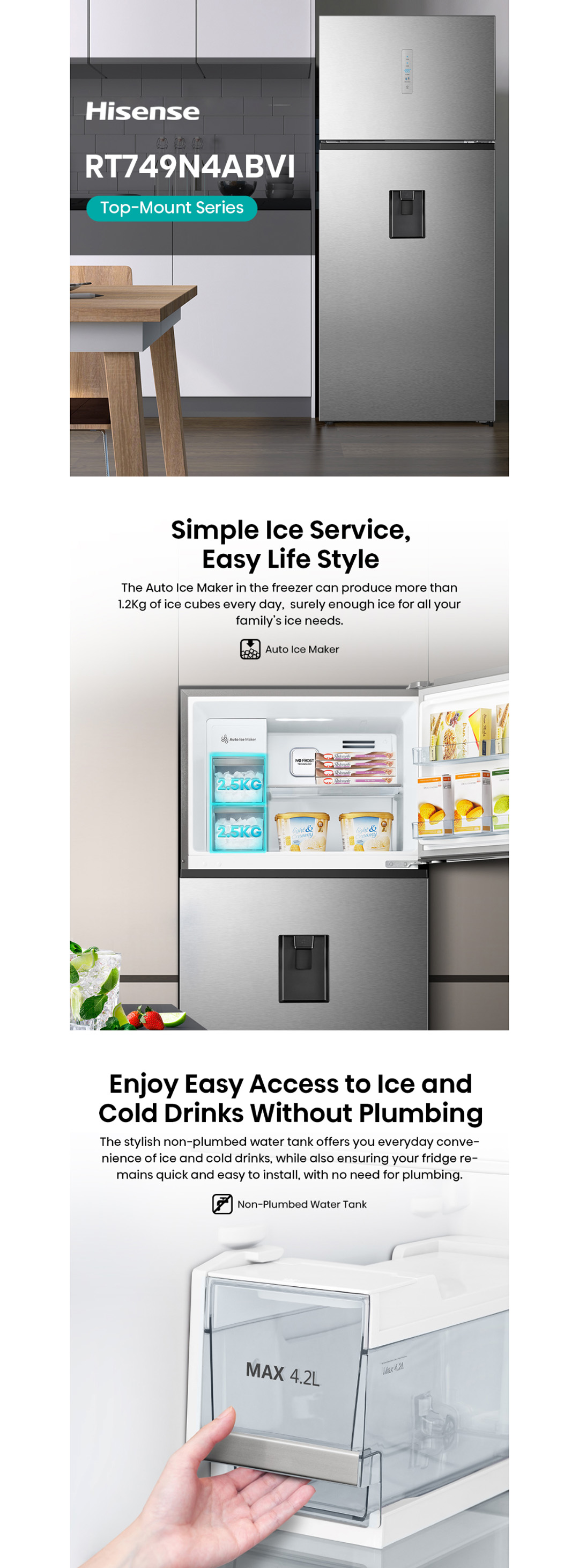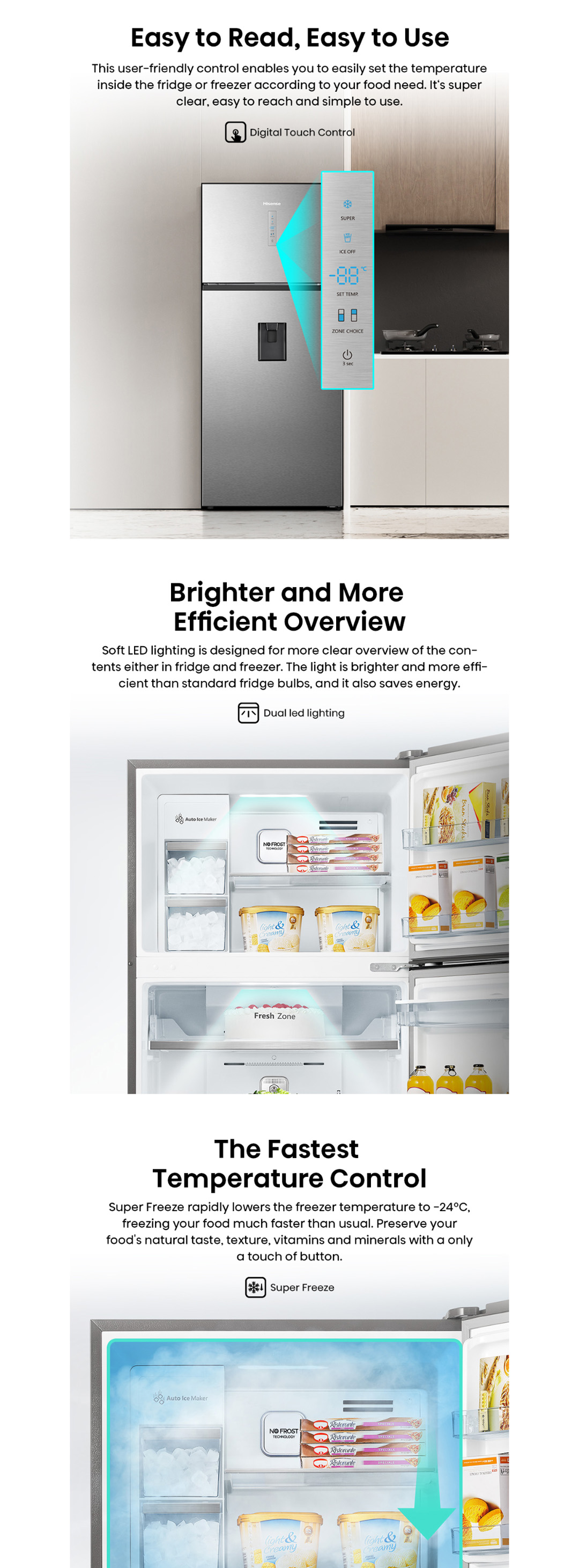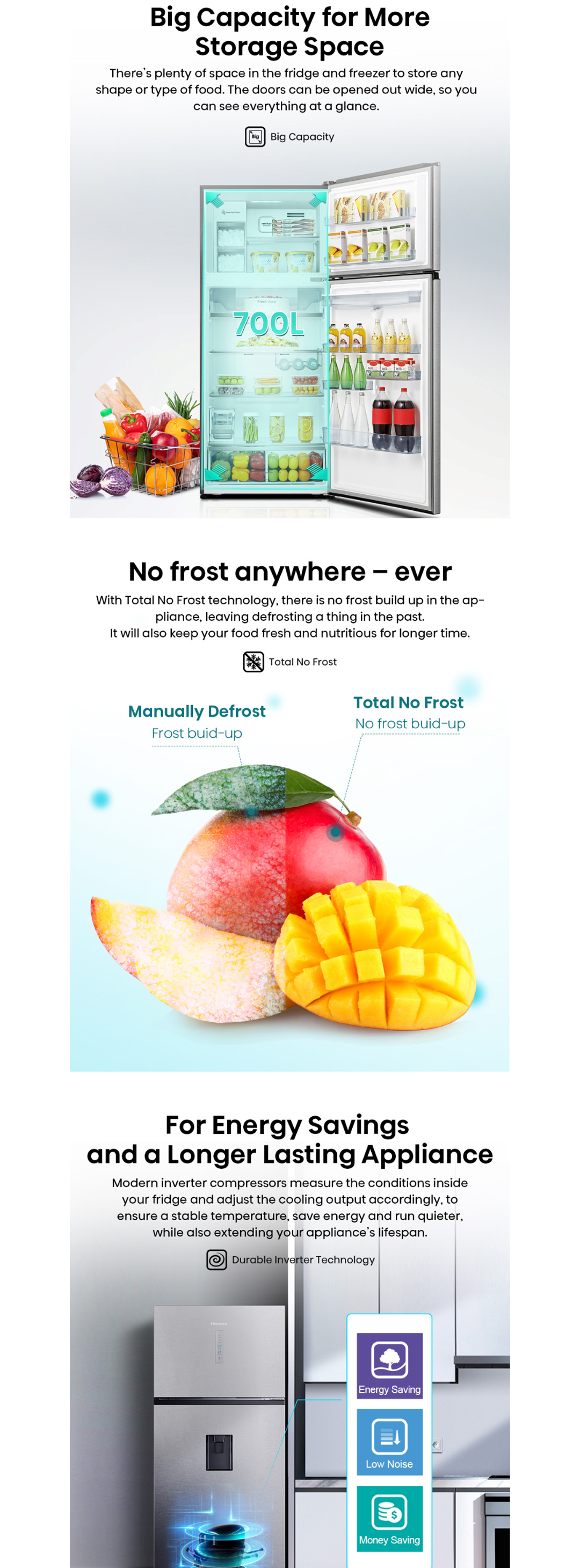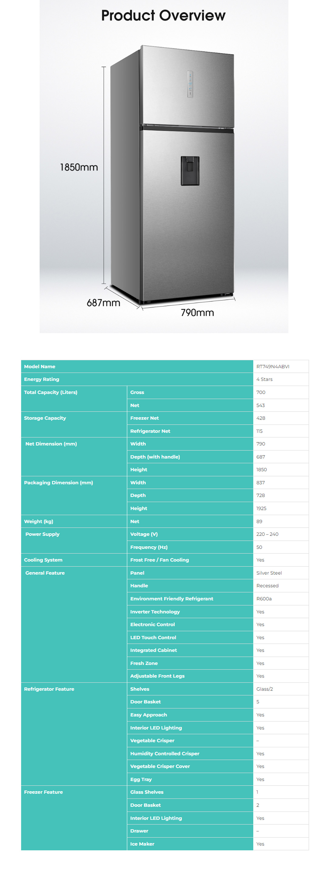 HISENSE 700L 2 Doors Top Mount Durable Inverter Refrigerator RT749N4ABVI | Digital Touch Control | Dual LED Lighting | Super Freeze | Fresh Zone | Multi-Air Flow | Magnetic Door Switch | Refrigerator with 3 Year Warranty