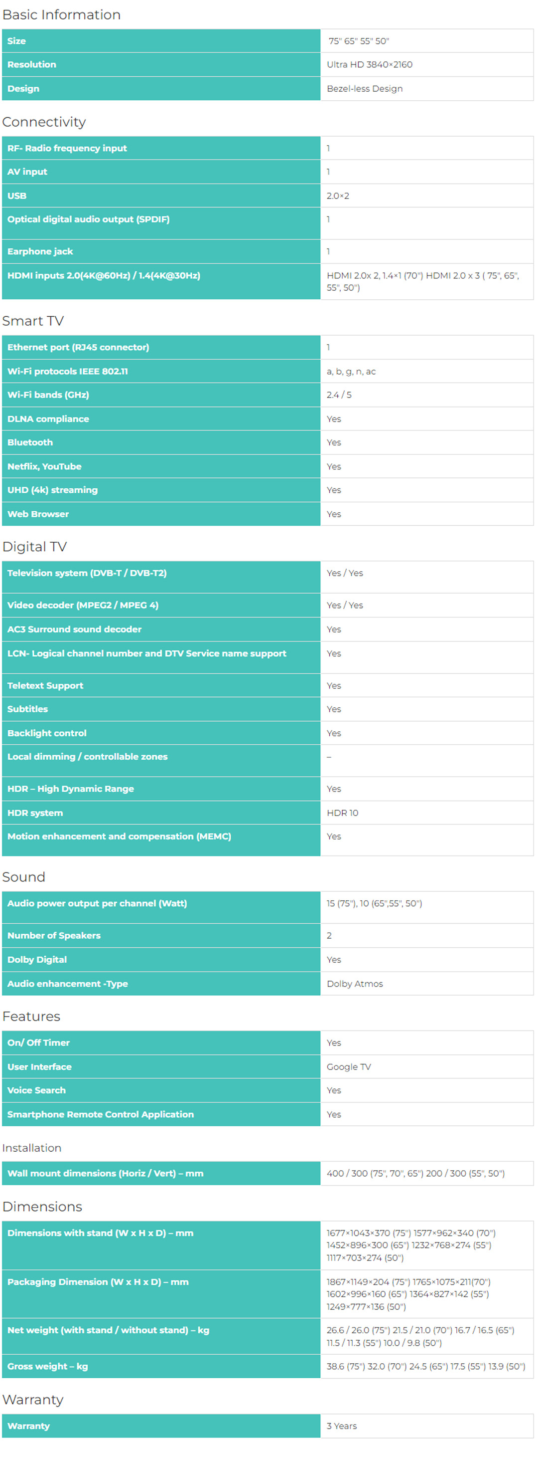 HISENSE 75" 4K UHD Google LED TV 75A6500H | Google TV | Dolby Digital | Voice Search | Smartphone Remote Control | Television with 3 Years Warranty