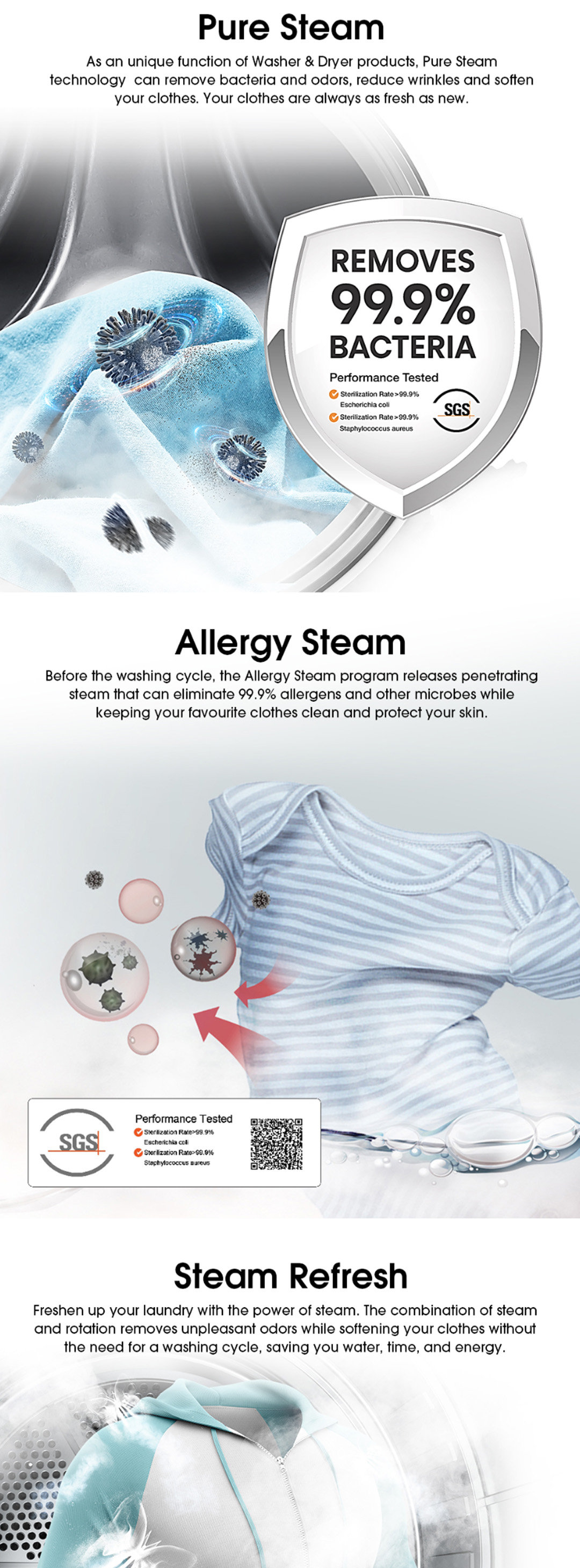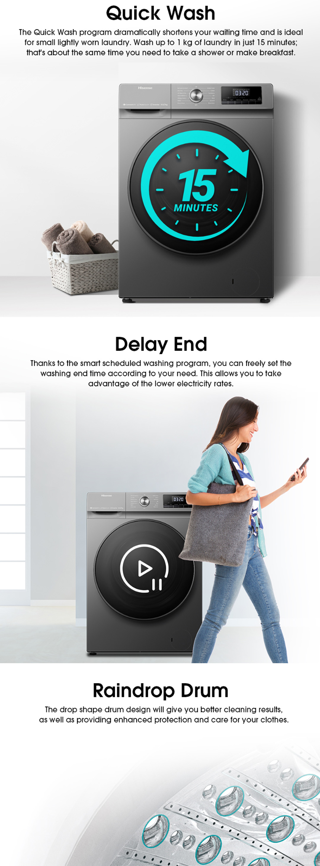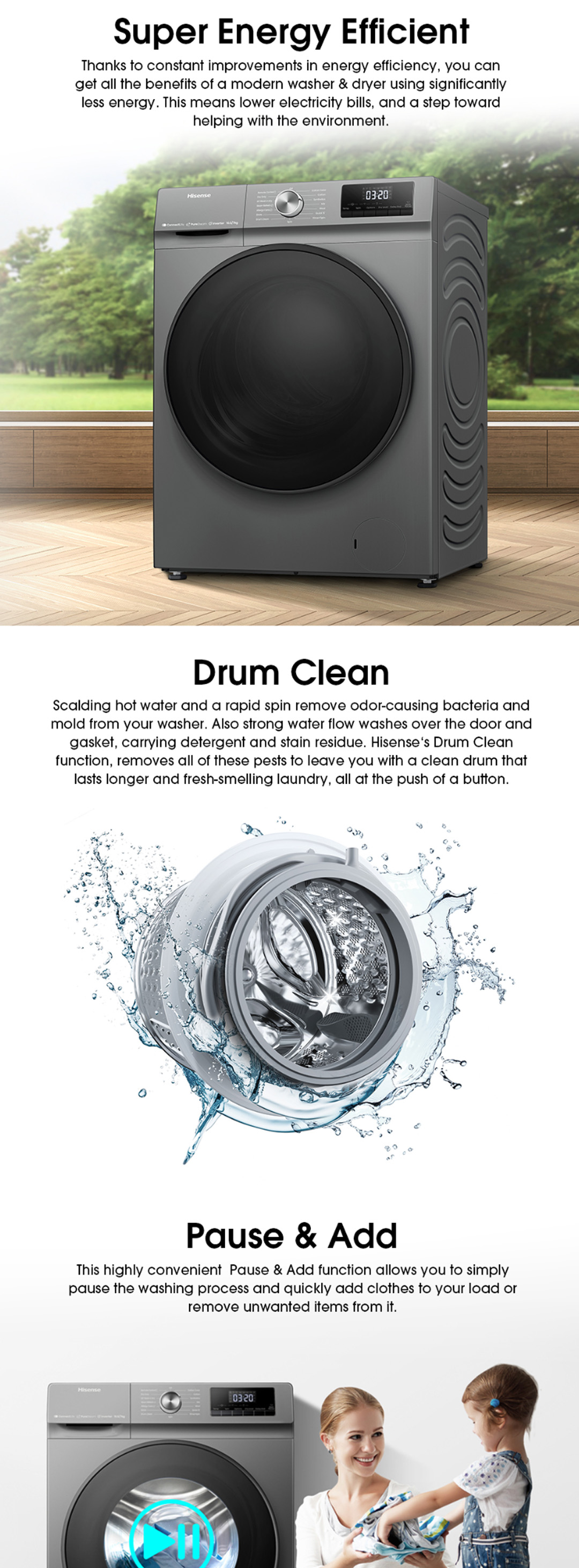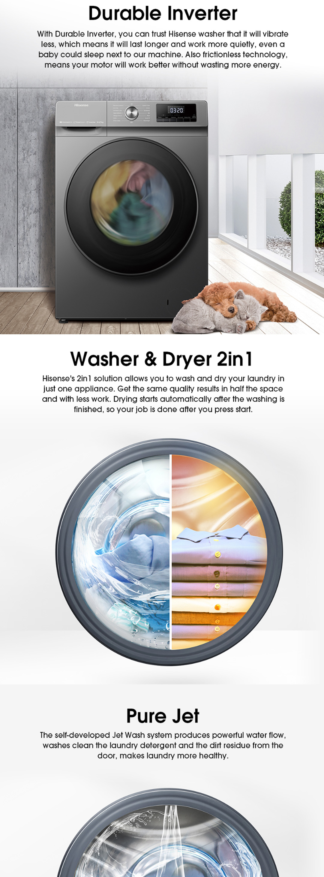 HISENSE 8.5KG/6KG Front Load DD Inverter Washer Dryer WD3Q8543BW | WIFI Control | Pure Steam | Allergy Steam | Durable Inverter | Pure Jet | Drum Clean | Quick Wash | Delay End | Raindrop Drum | Washer Dryer with 2 Year Warranty