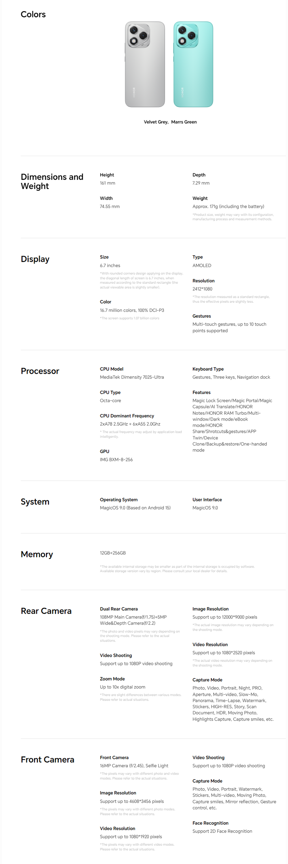 • Operating System : Android 15, MagicOS 9