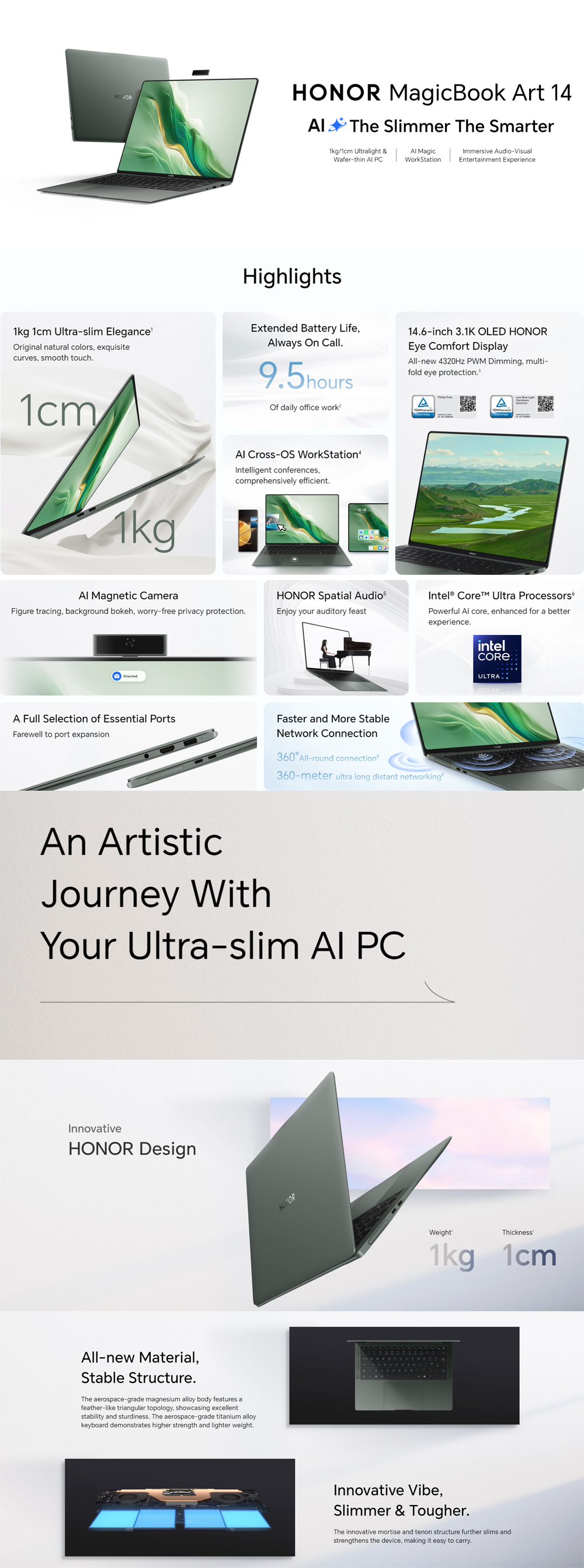HONOR MagicBook Art 14 2024 Laptop MRA-721 | Windows 11 Home | 14.6-inch | AI Magic WorkStation