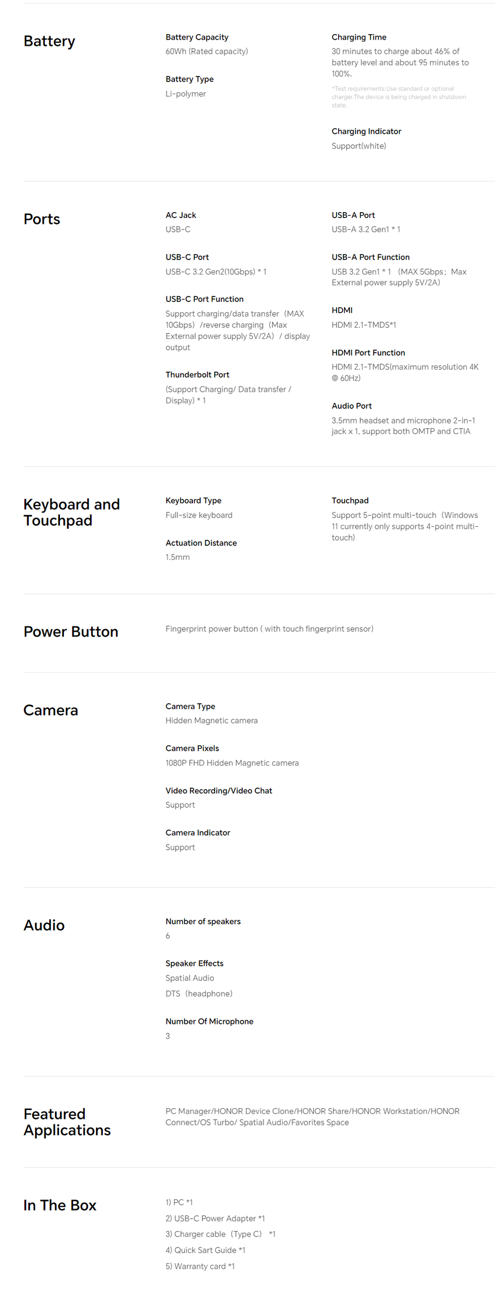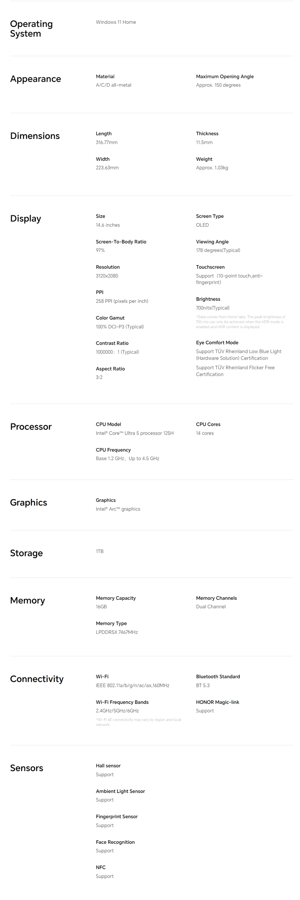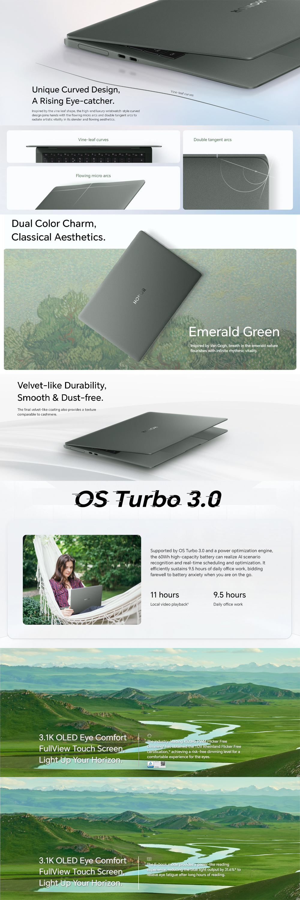 ▪ 14.6" 3.1K OLED HONOR Eye Comfort Display