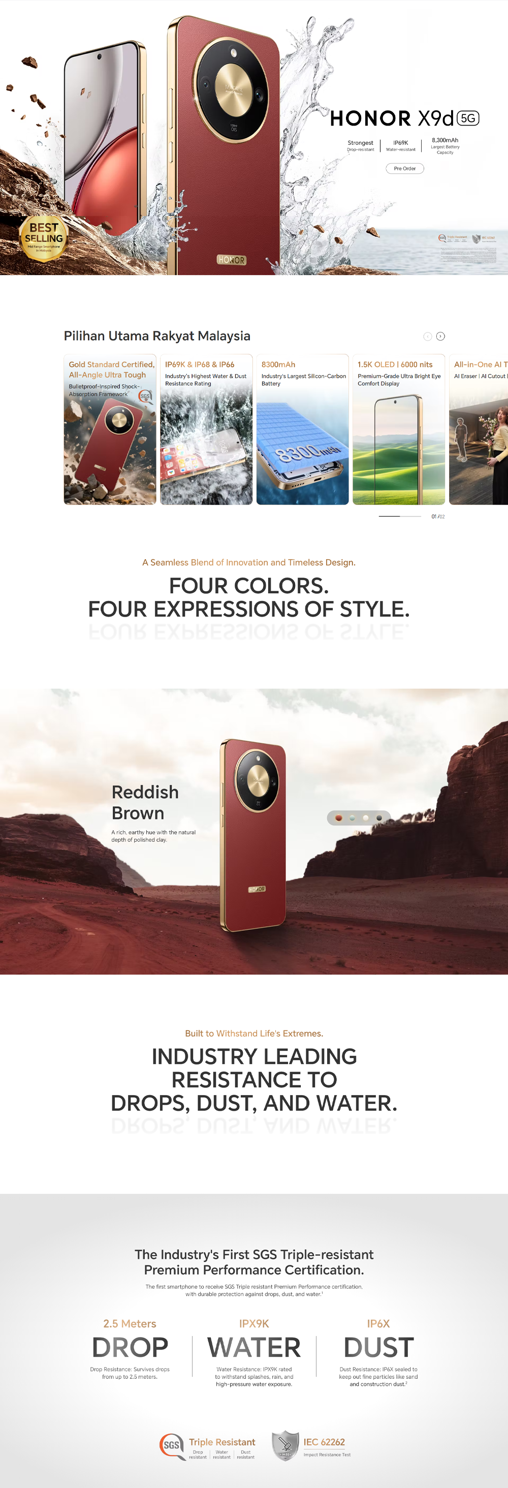 HONOR X9d 5G | IP69K Water-Resistant | Li-Po 8300 mAh,Fast charging 66W | Strongest Drop-resistant | Qualcomm Snapdragon 6 Gen 4 (4 nm)