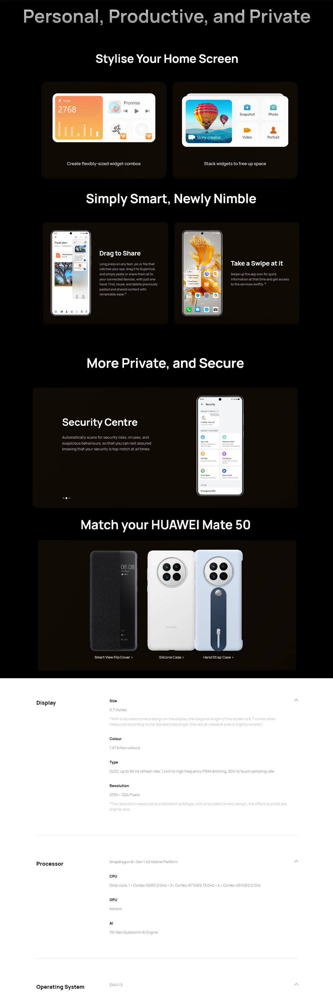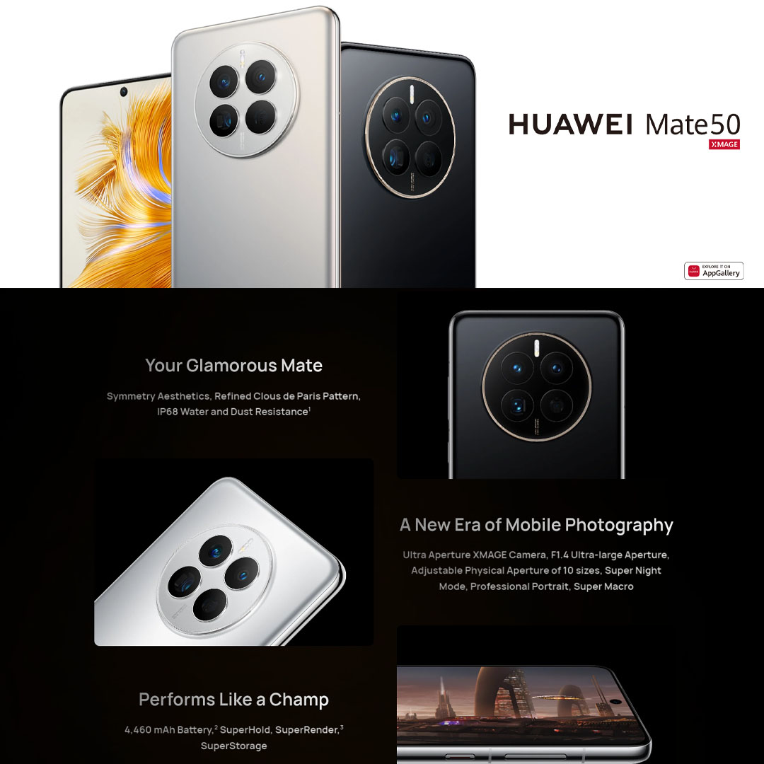 HUAWEI Mate 50 | 8GB+256GB | Ultra Aperture XMAGE Camera | IP68 Water and Dust Resistance | 66 W Wired Multi-channel SuperCharge | Smartphone with 1 Year Warranty