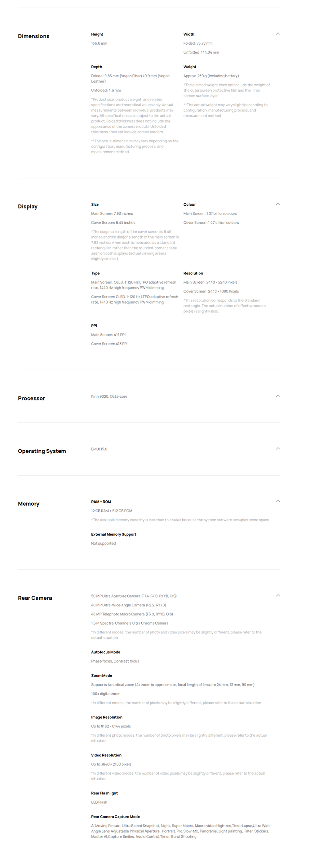 HUAWEI Mate X6 12GB+512GB | 7.93 inch, Foldable LTPO OLED | 50MP Main Camera | Kirin 9020, Octa-core | Si/C Li-Ion 5110, 66W Fast charging