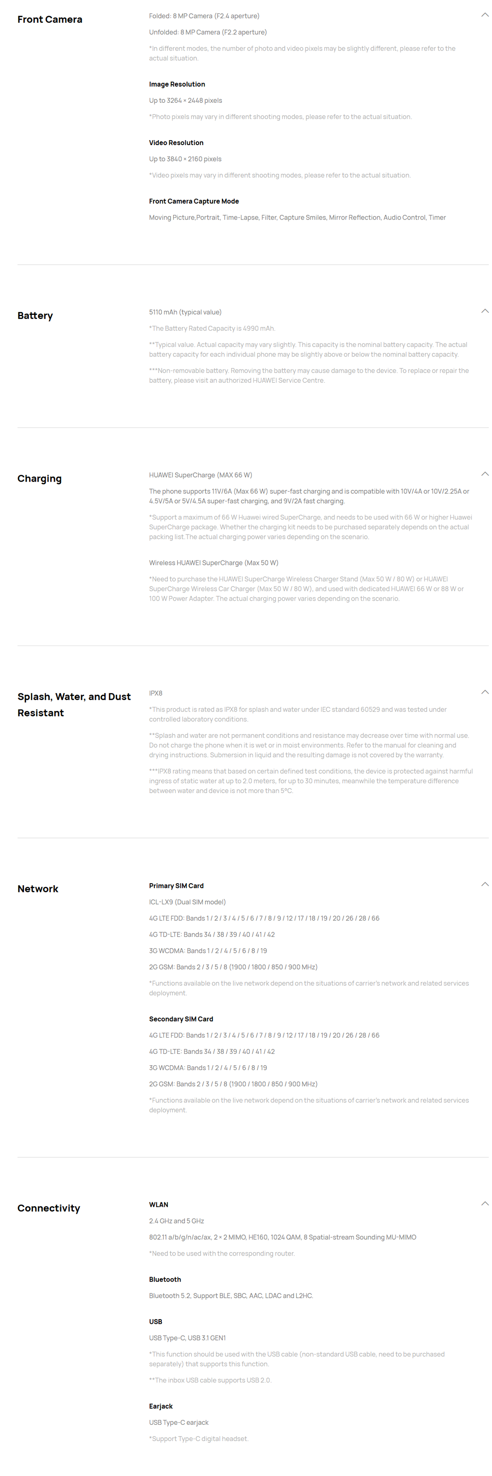 ▪ Battery Capacity(mAh): Si/C Li-Ion 5110, 66W Fast charging
