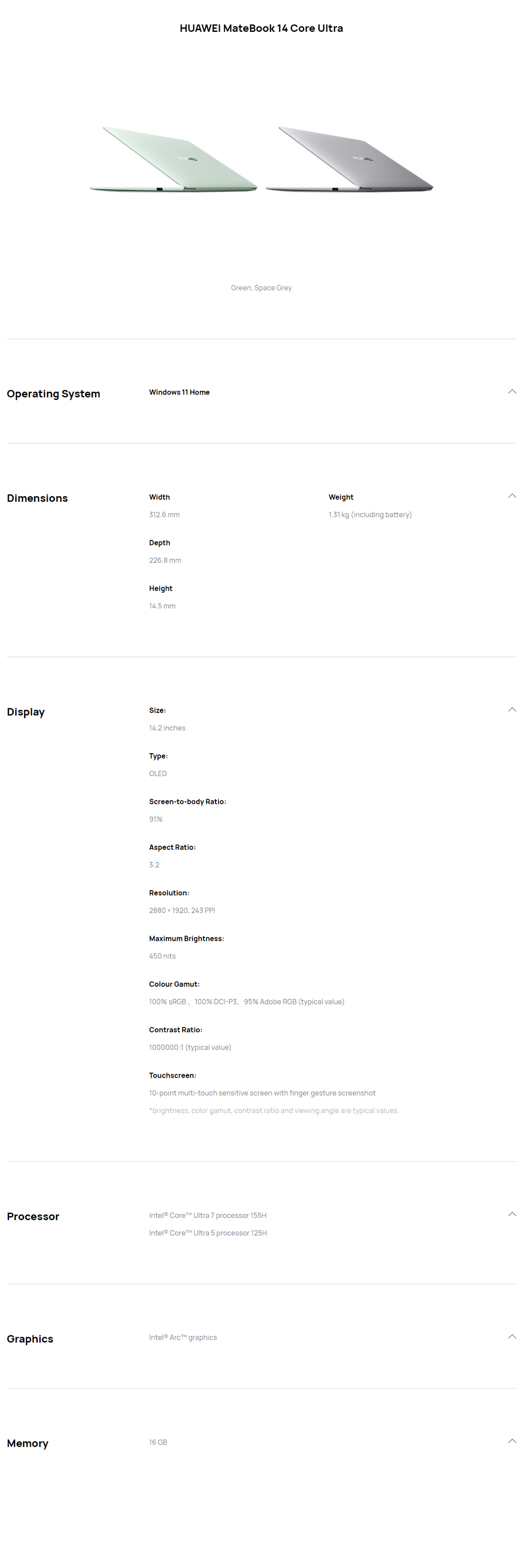 Huawei MateBook 14 Core Ultra 2024 Laptop | 2.8K OLED Touch-Control | AI Camera | Ultra Processors | 2 Year General Warranty