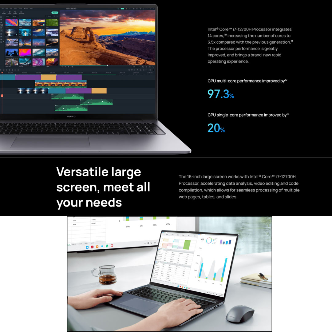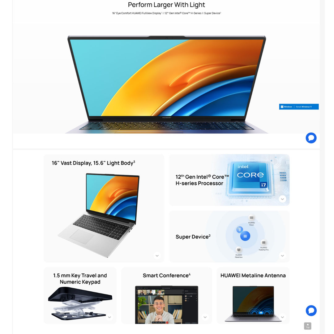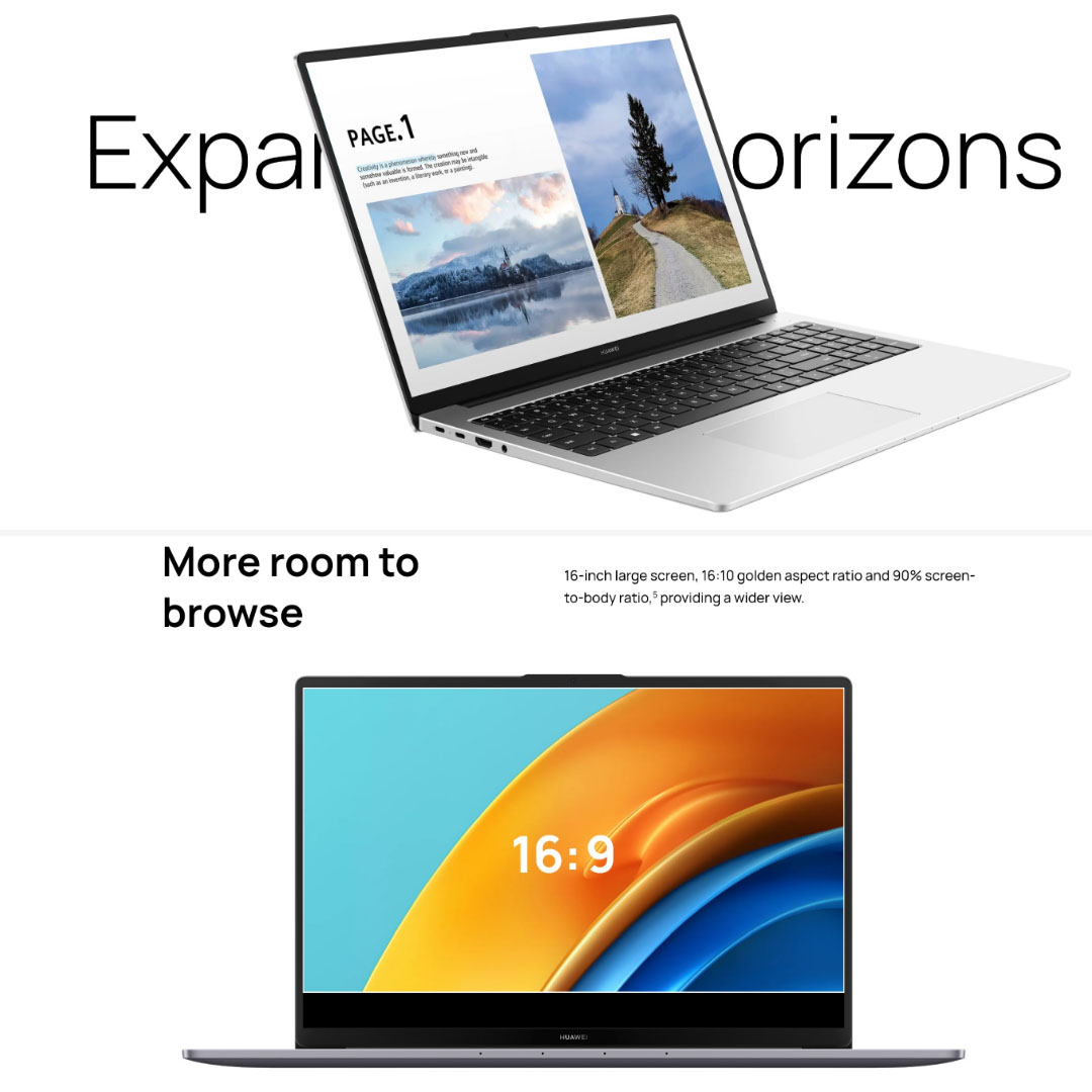 Huawei MateBook D16 Laptop 53013DCG (Intel Core i7-12700H/ 16GB+512GB SSD/ 16-inch FHD/ W11) | Smart Conference | Super Device | Bluetooth 5.1 | Laptop with 1 Year Warranty