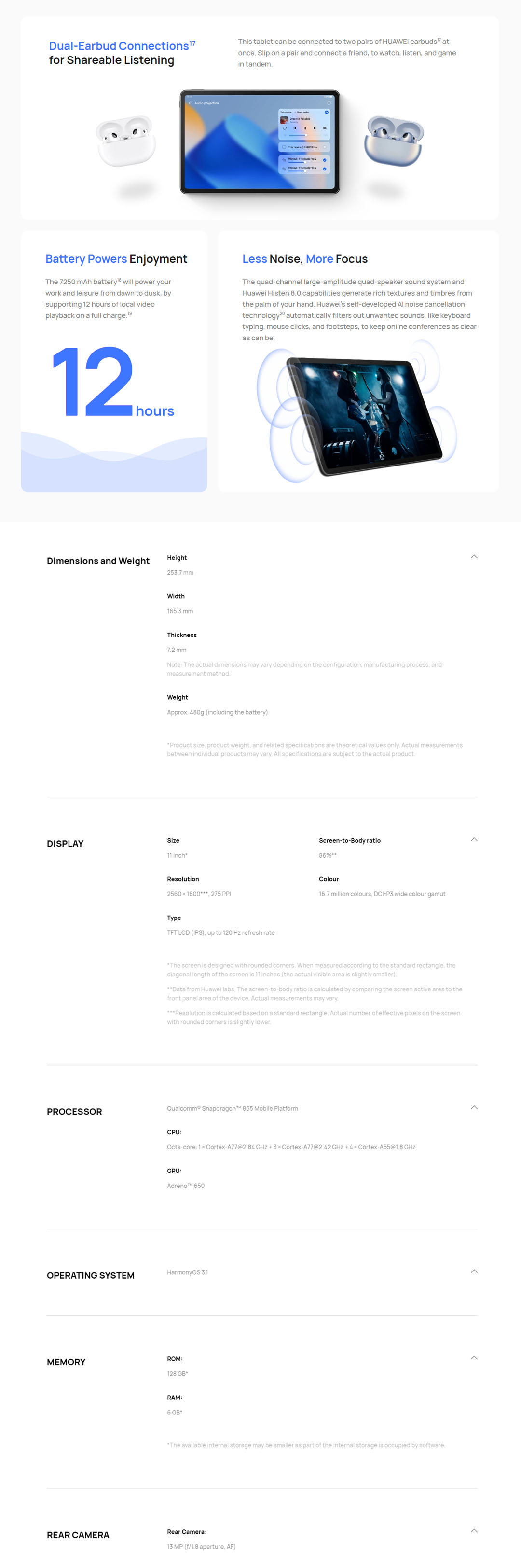 Huawei MatePad 11-inch 2023 | 6GB+128GB | Bluetooth 5.1 | OTG | USB 2.0 | 7250mAh | HarmonyOS 3.1 | 2 Microphones | Tablet with 1 Year Warranty