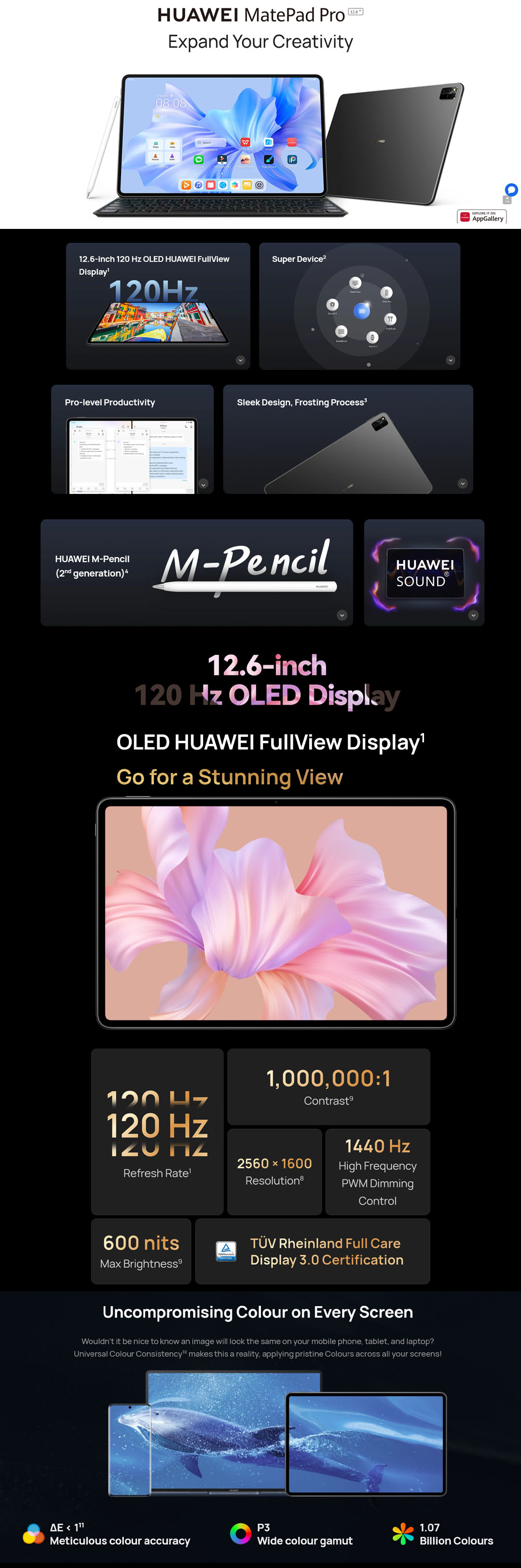 HUAWEI MatePad Pro 12.6-inch 2022 | WiFi | 8GB+256GB | 120 Hz OLED HUAWEI FullView Display | Pro-level Productivity | HUAWEI SOUND | Tablet with 1 Year Warranty