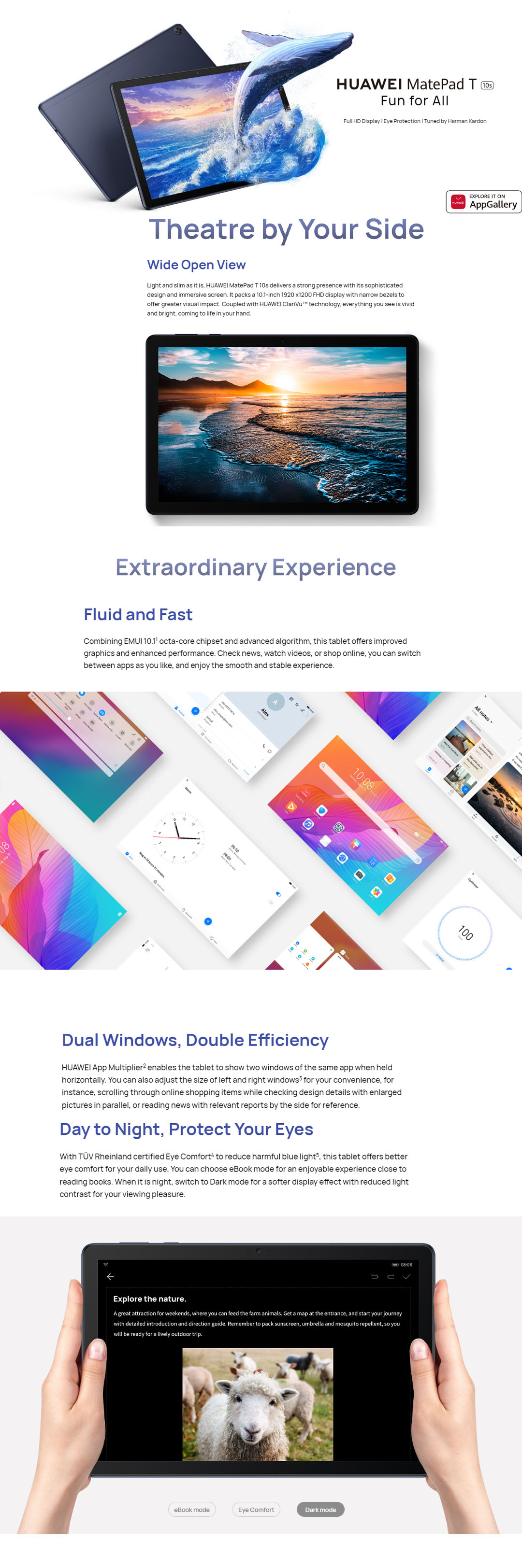 HUAWEI Matepad T10s WIFI | 4GB+128GB | Full HD Display | Eye Protection | Tuned by Harman Kardon | Tablet with 1 Year Warranty